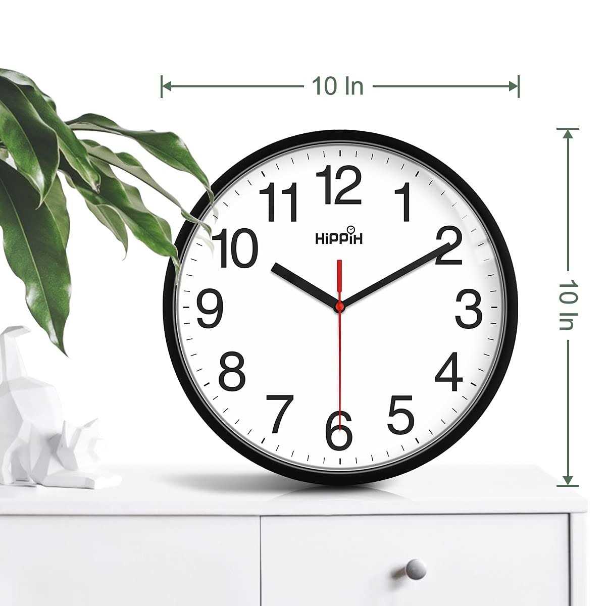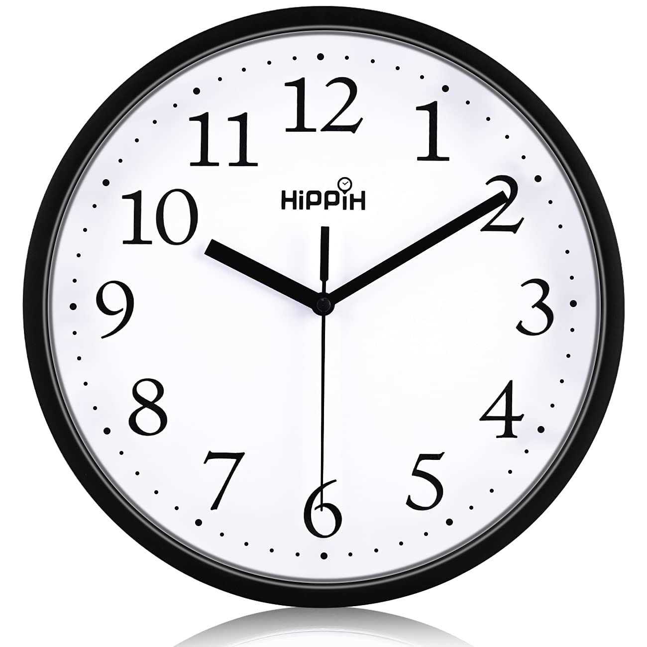 Hippih Black Wall Clock Silent Non Ticking Quality Quartz 10 Inch Round Easy to Read for Home Office School Clock