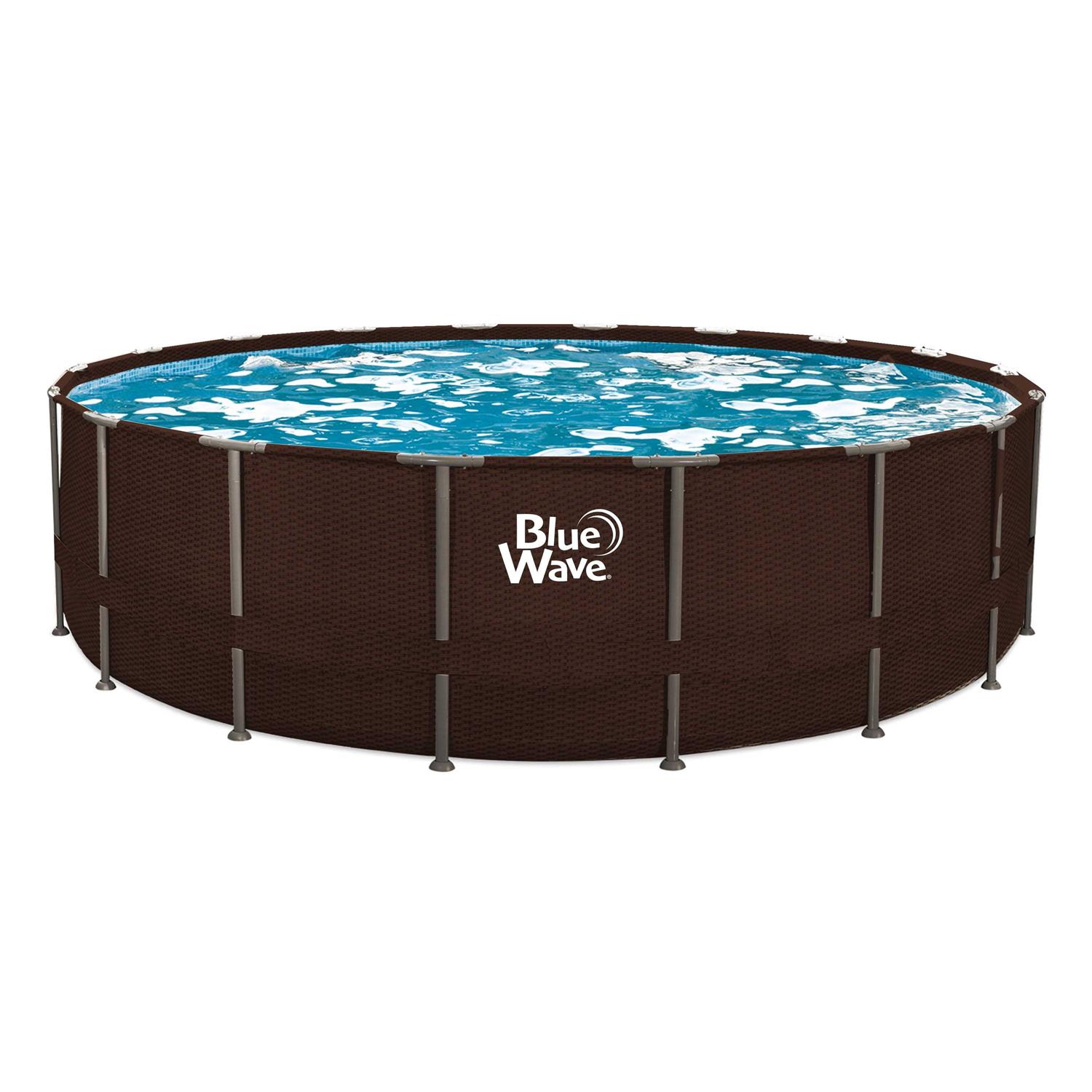 Blue Wave Mocha Wicker Round 52 in. Deep Metal Frame Swimming Pool Package