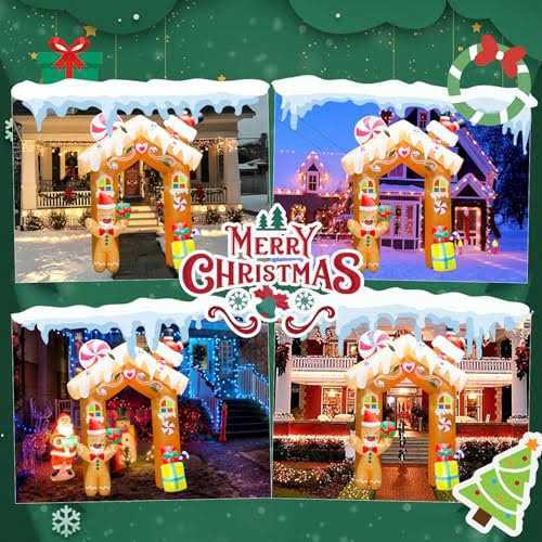 【Indoor & Outdoor Christmas Decor】Say goodbye to the cold winter and add Christmas inflatable decorations to bring you a warm festive atmosphere! There is nothing like placing 11FT tall Gingerbread Man Archway in your home yard to share the joy of the holiday with family and friends. – Exquisite details and vibrant colors make your Christmas decorations more vivid. – Whether placed indoors or outdoors, it can attract awe and praise from neighbors. 【Easy to Use】This 11Ft Christmas Inflatables Gingerbread Man Archway is easy to set up. – Simply zip up the zipper at the bottom and plug into a power socket,the built-in air blower will automatically inflate full Christmas inflatables outdoor decorations in moment and keeping the airflow going all day! 【Colorful LED Rotating Lights】The 11FT height Gingerbread Man Archway inflatable is built-in 1 rotating colorful light and 10 LED light. – By flickering, bouncing, or changing colors of the lights, this Christmas outdoor decor can add warmth, joy, and a peaceful festive atmosphere to the entire courtyard. And passersby will definitely be attracted and appreciated by this Christmas inflatable decoration,taking photos,and leaving meaningful records. 【Waterproof & Durable Material】Worry about rainy and snow? No Problem.11FT Height Gingerbread Man Archway decor is made of high quality waterproof polyester,and the air blow is also waterproof. – Since you could still showcase Christmas spirit in the rough weather conditions. – And it is equipped with 6 stakes and 2 built-in water bags to maintain stability when the wind blows. 【Ideal & Memory Gift】This inflatable Christmas decoration comes with an exquisite gift box, making it a perfect gift choice for friends and family. The lightweight and foldable design takes up no space, making it easy to store and carry. Let’s use these cute inflatable decorations together to create a Christmas filled with love and joy. Decorate your home, render your heart, and bring infinite joy to this special day!