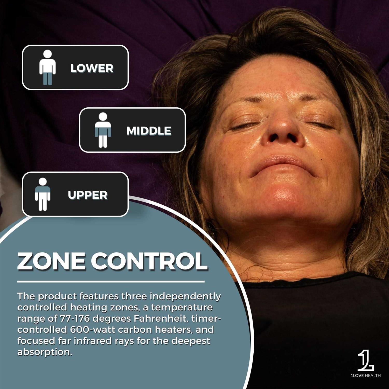 Lay down, relax, and experience the benefits of a sauna at home with this 360 Degree Complete Coverage Far Infrared Sauna Blanket by 1Love Health. This sauna blanket is constructed of 8 powerful layers: a stone layer with 96 jade and tourmaline stones, a waterproof PVC layer, a nylon insulating layer, a heat conduction layer, 3 zone temperature controller and sensor, infrared heating layer, a heat insulation layer, and a nylon outer layer. Featuring a capability of up to 62 inches of circumference, this blanket will fit most body types. If you are larger than 62 inches, a second blanket can be easily attached through the blanket’s wide velcro strips. This at-home sauna’s 3 separately controlled far-infrared zones can be adjusted from 77-176 degrees Fahrenheit, and its powerful 600 watts protected control box is tuned to 4-15 um to precisely resonate with your body. Experiencing the benefits of a sauna at home has never been easier thanks to the 360 Degree Coverage Sauna Blanket by 1Love Health.