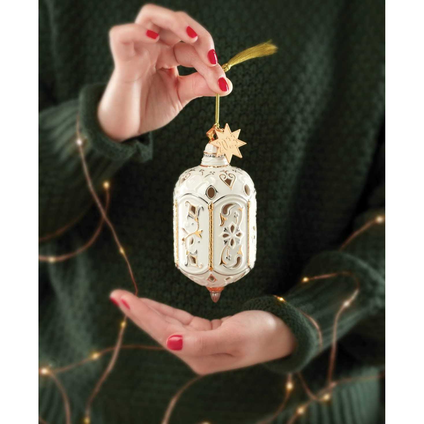Capture the essence of the holiday season with the 2023 Lenox Annual Ornament! Expertly crafted in porcelain with a traditional ornamental shape and a snowy charm, this ornament is a timeless and elegant addition to any holiday decor. Featuring intricate cutouts and finely detailed gold accents, it exudes a sense of intricate beauty that is sure to impress. Each year, Lenox brings something new and exciting to their annual ornament collection, and this year is no exception. Don’t miss out on the chance to add this exquisite piece to your collection and create a cherished holiday tradition that will last for years to come! The 2023 Lenox Annual Ornament is dated 2023, measures 5.75″ High and includes Lenox gift box.