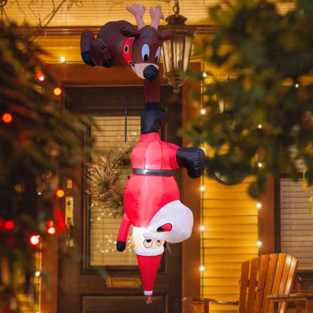 7.8ft Inflatable Reindeer and Santa Falling Christmas Hanging Decoration