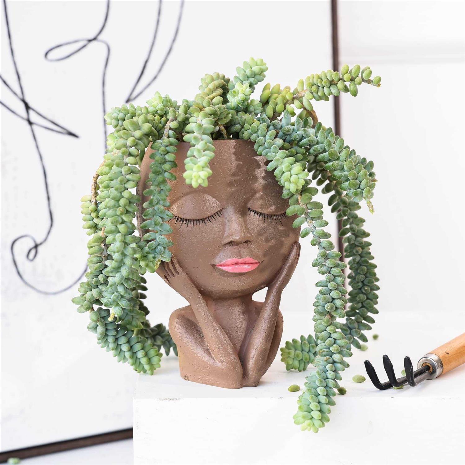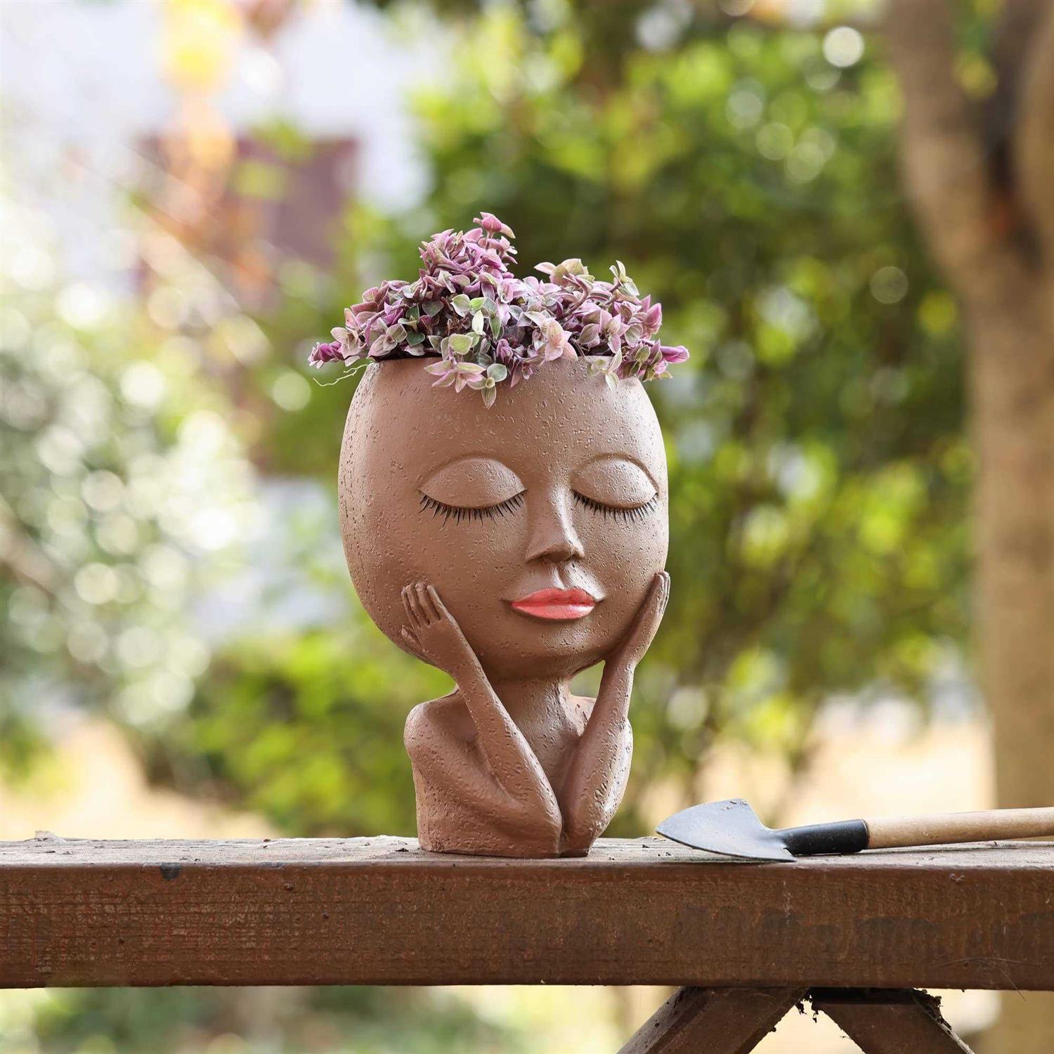 Aimebby Face Flower Pot Head Planter Pot Succulent Planter Cute Resin Cactus Planter with Drainage Hole Closed