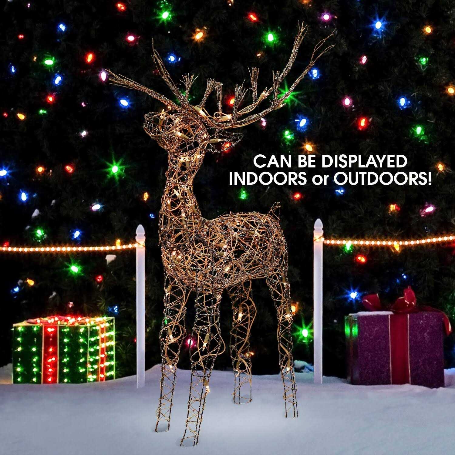 Alpine Corporation Outdoor Holiday Rattan Reindeer with Halogen Lights
