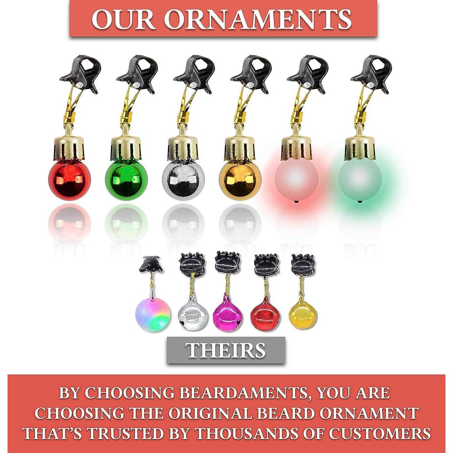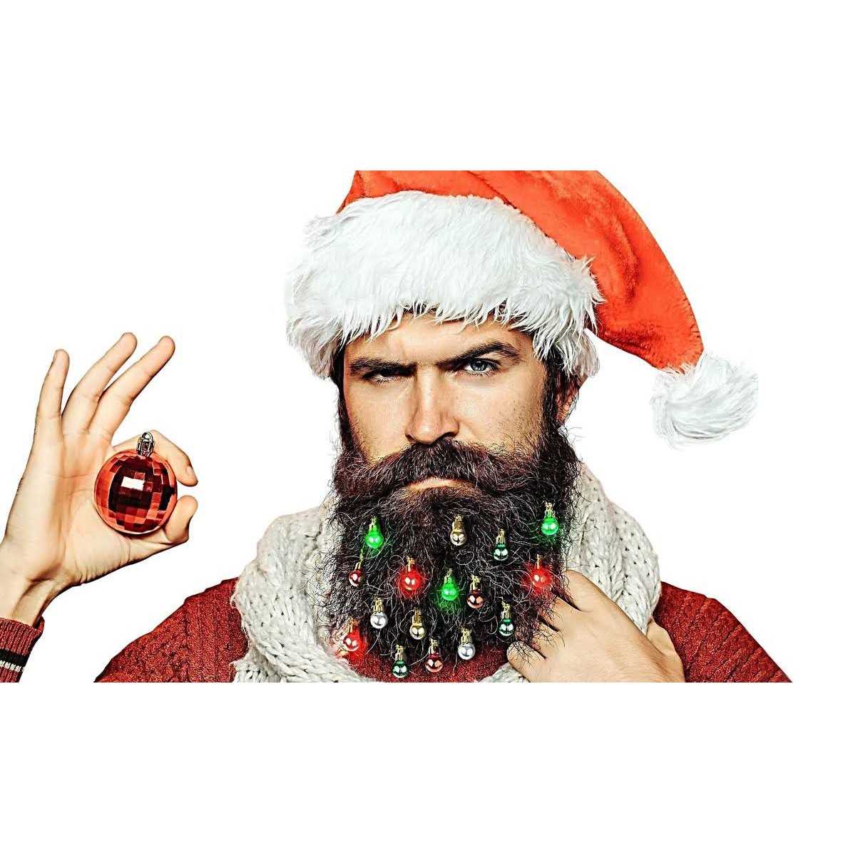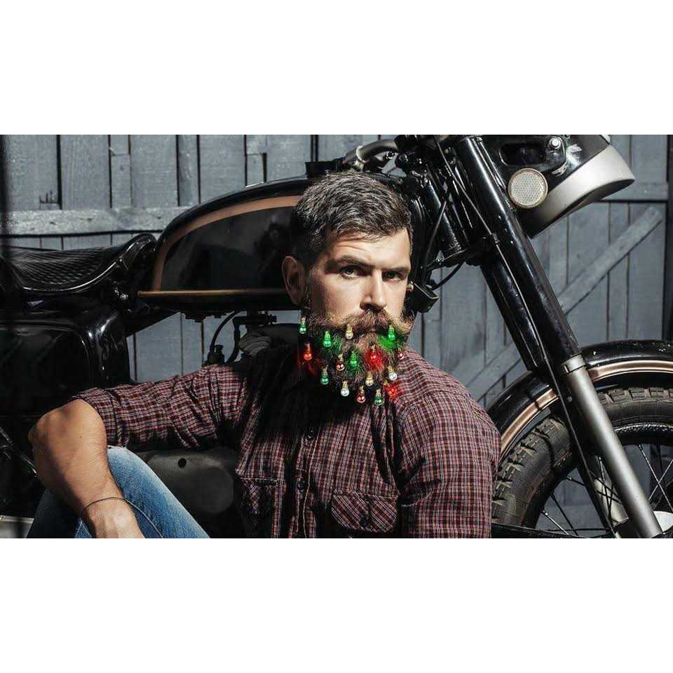 What’s that warm calming glow? It’s a lighted beard, in a window, on a cold dark Christmas night! Beardaments Lights include 16 beard ornaments with 3 red lights, 3 green lights, and 3 red, 3 green, 2 silver and 2 gold of our original best selling beard ornaments. You have seen our basic beard bling, but now it’s time to put Rudolph’s nose to shame! Our Beardaments lights come with an On/Off switch, and are the same size as our best-selling original beard ornaments. The battery is included inside each ornament, so no need for wiring to be running across your beard! These also work great in women’s hair! The attached high-quality mini clips hold tight on most beard lengths. Lighten the way for the Three Wise Men this Christmas with the NEW Beardaments Lights.