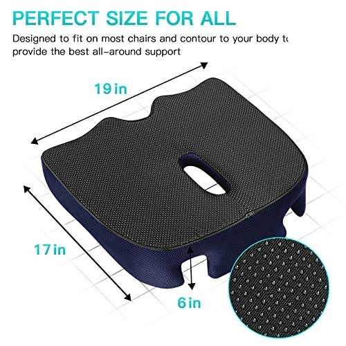 Benazcap X Large Memory Seat Cushion for Office Chair Sciatica & Back Pain Relief Memory Foam Firm Coccyx Pad for Car