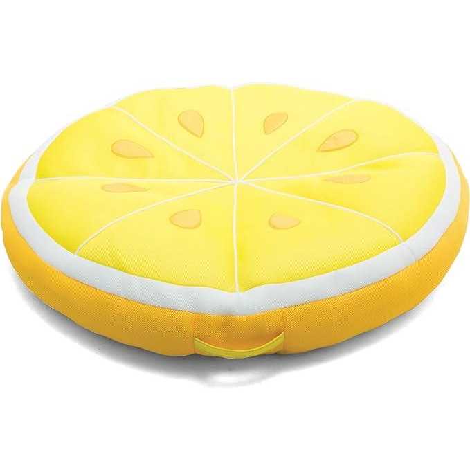 Soak up the sun on the small Lemon Fruit Slice Float! It’s as sweet as it looks and perfectly filled with beans so you are ready to hit the water in no time. These fun and Instagram-worthy floats are the perfect addition to your next pool party! The patented bean filling is homegrown in Grand Rapids, MI. It’s super lightweight, perfect for taking your pool float with you for all your water adventures! The pool float is designed to be easy to carry, drain quickly when out of the water, and make for an epic day in the pool. Approximate Dimensions: 32.5 x 32.5 x 7 inches.