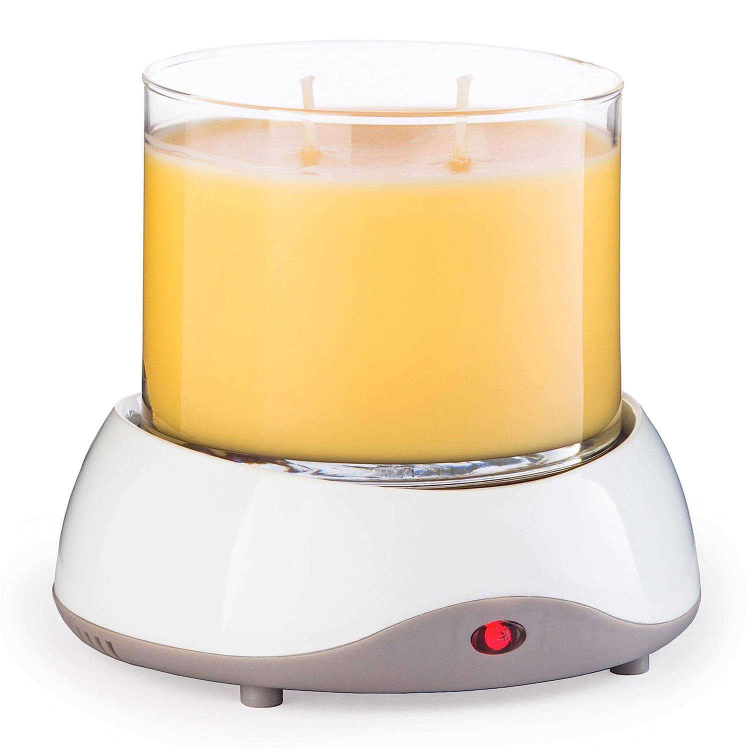 Enjoy candlelit ambience without flame risk or residue! Warming plate melts your favorite scented candles to release their fragrance simply add a candle in a heat-safe glass container. Warmer with dial switch automatically shuts off after 8 hours for worry-free use. With a 4dia. warming plate, it fits a variety of scented candles 16 oz. or smaller. ETL-listed unit is electrical-rated at 120V 60Hz, 17W. Approx. 5 1/4 long x 5 wide x 1 3/4 high and 0.4 lbs.