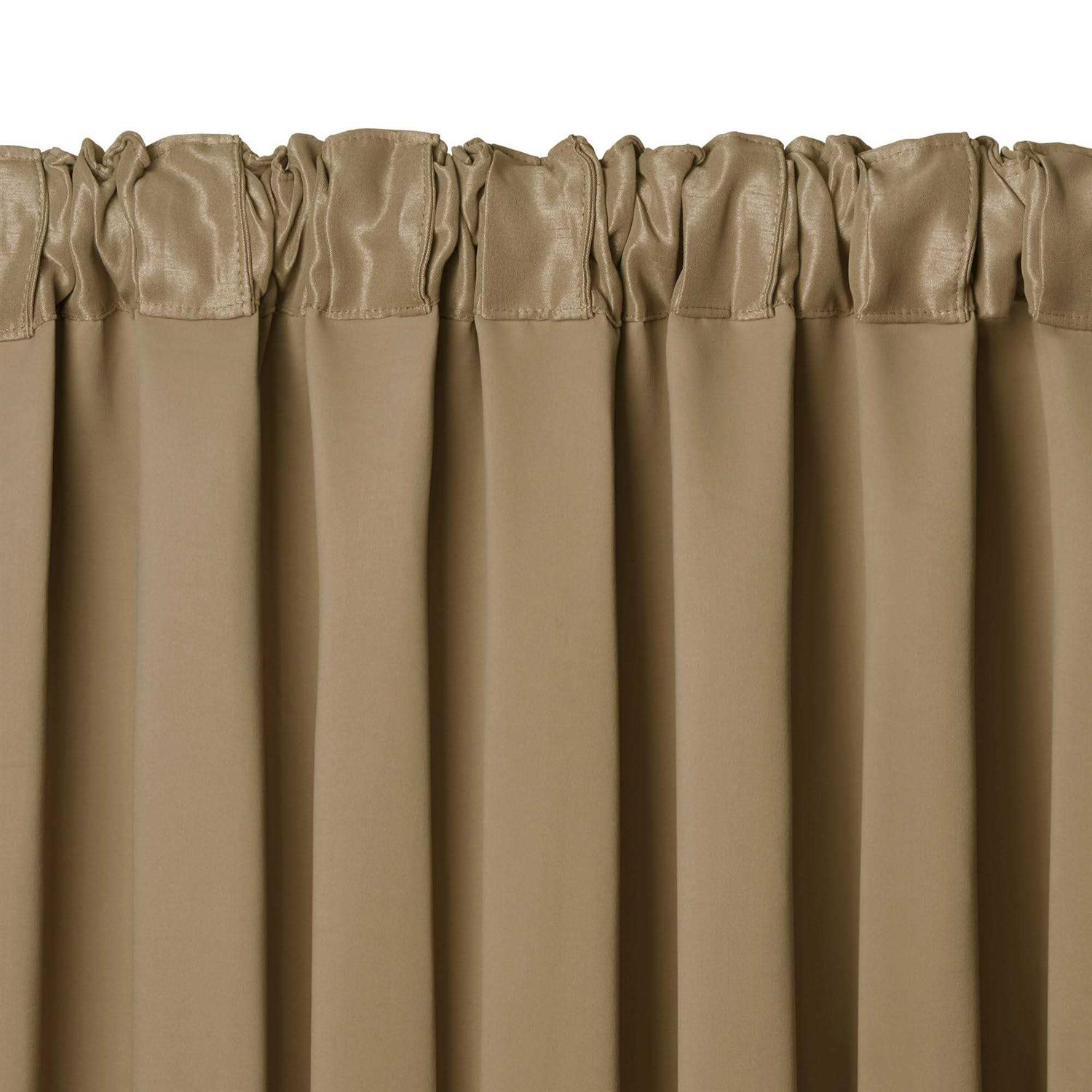 The All Seasons curtains offer an elegant silk look and room darkening benefits. A versatile color palette makes these window panels perfect for any décor. Drapes feature rod pocket and back tab hanging options. Rod pocket/back tabs measure 4 inches and are rmended with up to a 2.5 inch rod for maximum movement. Sold as a single window panel with one coordinating tie back. Matching waterfall valance sold separately. 100percent polyester. Easy care, machine washable.