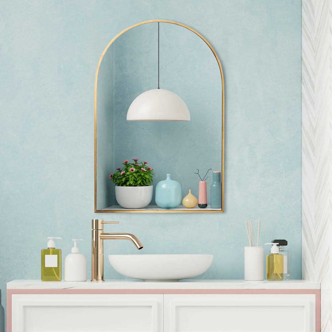 The frame of this arch mirror is made of high-quality aluminum alloy for durability. This product is a beautiful and safe wall-mounted mirror. Suitable for any room in a residence, but also for commercial spaces such as retail stores, offices, etc. This versatile wall mirror creates the illusion of space by reflecting light, enhancing your room, and making it appear larger. The classic frame design fits into any room style.