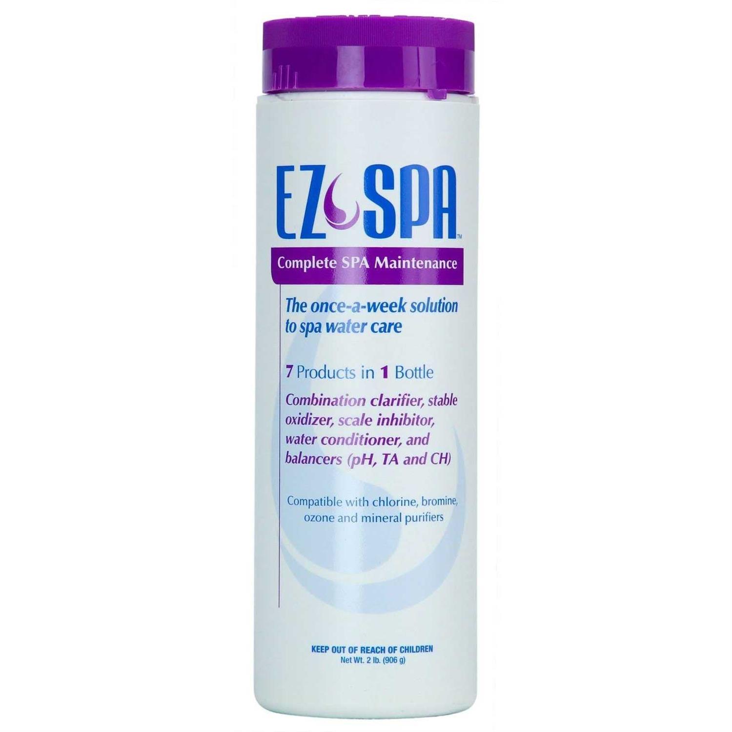 A proprietary blend that contains a clarifier, stable oxidizer, scale inhibitor, water conditioner, defoamer, and water balancers to keep spa water clean, clear and trouble-free. EZ SPA is a water care program that combines simplicity and incredible water quality in a once-a-week application. This specially blended formula manages spa water while eliminating the confusion of adding multiple chemicals every other day. EZ SPA contains a clarifier, stable oxidizer, scale inhibitor, water conditioner, and balancers (pH, TA and CH) to keep spa water clean, clear and trouble free. Spa water treated with EZ SPA is scale and foam free. The concentrated formula creates a PROACTIVE water care program that PREVENTS problems instead of treating them on a REACTIVE basis after they occur. EZ SPA is compatible with ozone and mineral purifiers as well as traditional sanitizers and balancers.