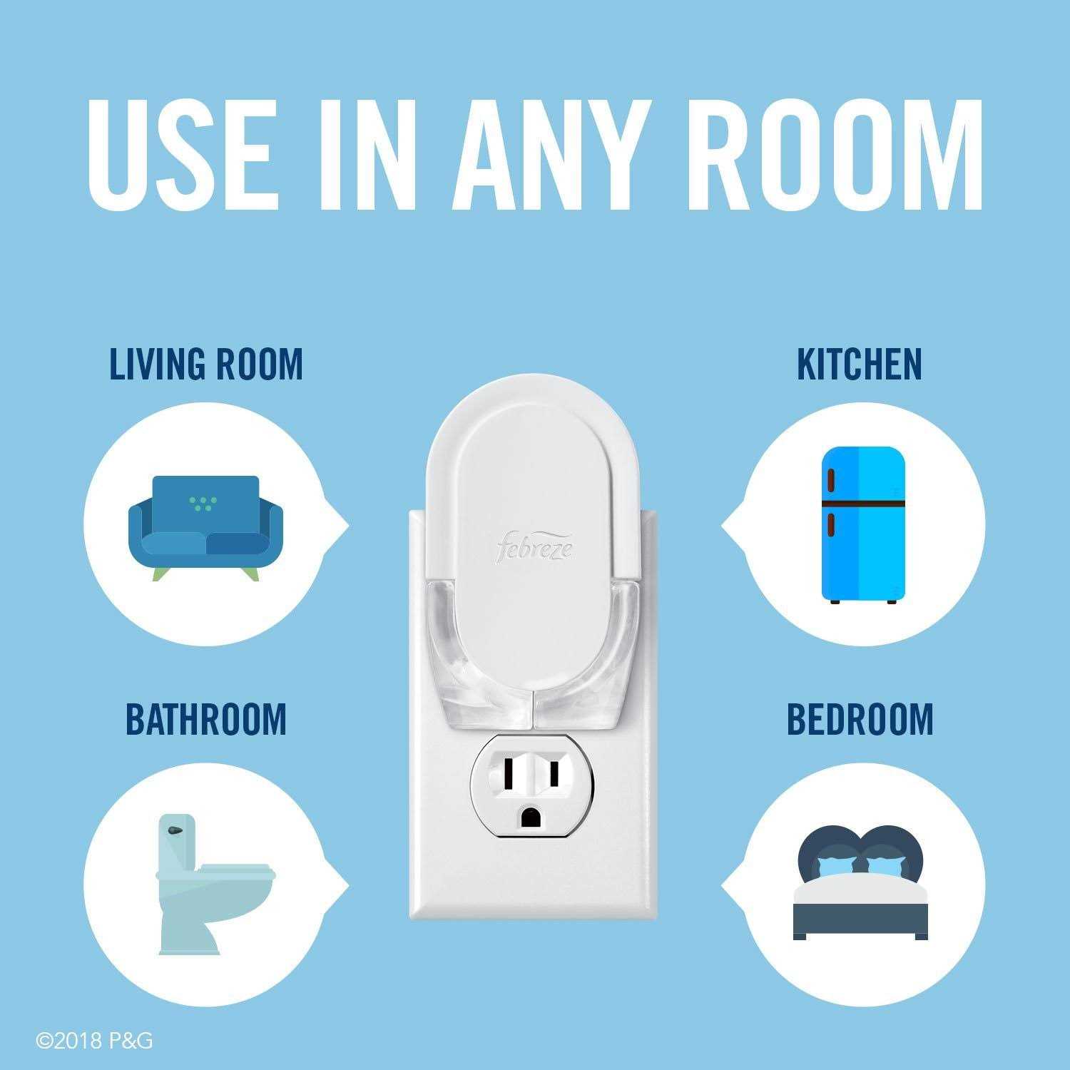 Febreze PLUG cleans away odors instead of simply covering them up. Plus this air freshener plug cleans away stinks for 1200 hours with just one pluggable refill (on low setting). simply plug into any outlet to clean away stinks. Febreze plug air freshener refills are compatible with both the classic and newly redesigned Febreze plug warmers. Like what you smell? Febreze is also available in Febreze AIR (air freshener spray) and Febreze CAR (car air freshener vent clip).