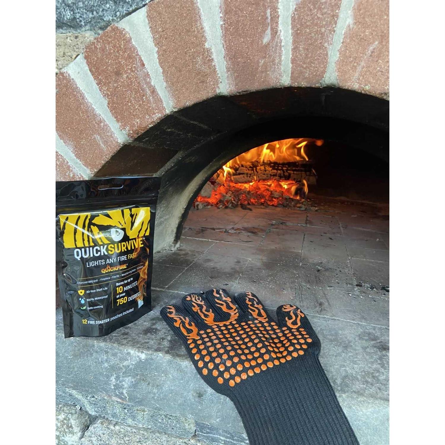 Quick Survive 12pk Fire Starter PouchesQuick Survive QuickSurvive is a weatherproof fire starter that works under the most extreme conditions. Their proprietary formula is engineered to sustain an intense flame that can reach over one foot in height while producing a continuous burn time of up to 10 minutes. QuickSurvive pouches have a shelf life of over 30 years!