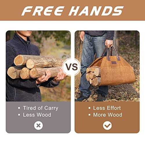 Brand: G GOOD GAINColor: KhakiFeatures: HIGH QUILTY CANVAS & DURABLE HANDLE: Our firewood carrier uses 16oz water-resistant waxed canvas. It’s made to last with edging design and double canvas on the top, so it’s sturdy enough to carry heavy wood when you use this log carrier. and wear-resistant & dirt-proof. This firewood tote has a soft leather handle, which makes the bag easy to carry and transport. CARRY FIREWOOD MORE EASILY: The heavy-duty waxed canvas firewood carrier has an open side, so you can load it up with any length of firewood and it holds up to 10 standard logs. If you’re planning to move an entire log, don’t hesitate, utilize this fireplace log carrier more easily. WATER-RESISTANT & WEARPROOF: Firewood log carrier tote bag is well-made, lightweight and handy, waterproof, scratch-resistant compact waxed canvas material, more durable & load bearing, easy to clean and long lasting. The waxed canvas material repels water, so you can carry in snowy logs without getting wet. When not in use, the bag folds flat for out of sight storage. LARGE CAPACITY LOG CARRIER: Large Carrier Bag with extra large dimensions of 36″Long x 18.5″ Wide(including handles), perfect size for carrying more logs, firewood, kindling, woods and twigs. Suitable for carrying and transporting more logs from your woodpile to your fireplace. MULTI-FUNCTION: Not only a firewood cover, to keep wood chips inside and not scattered on floor, for firepit, grilling and pretty much everything about outdoors; but also it can be used for other carrying or storage purposes such as: tools, picnic, camping, packing, kid toys, as a generous fashion holder. model number: 17-163EAN: 6974007271203Package Dimensions: 8.7 x 8.0 x 2.8 inches
