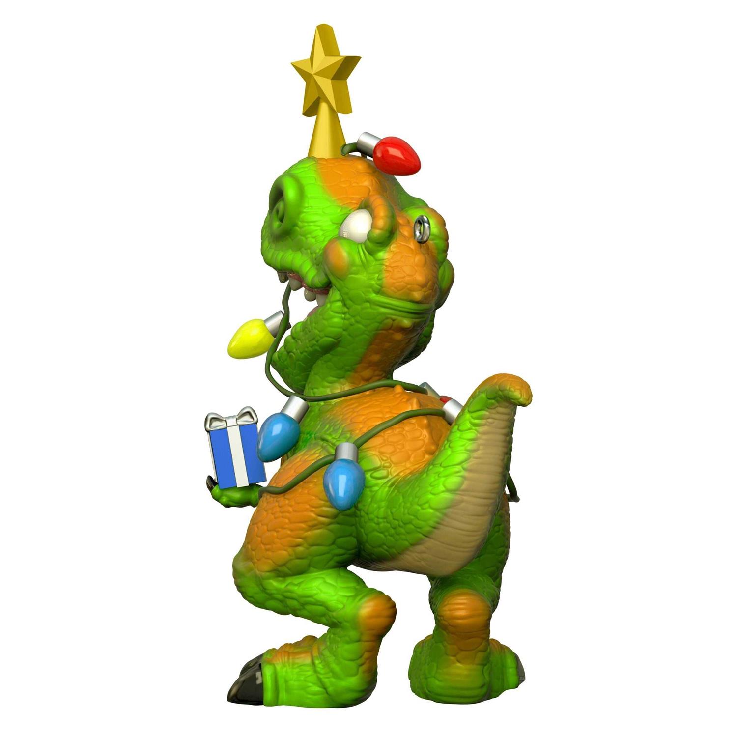 Get ready for a holiday season of prehistoric proportions with this fun Tree Rex Christmas tree ornament. The cheery T-Rex is wrapped in string lights and topped with a star as he holds a present to celebrate the holidays in dino-mite style. He’s the perfect decoration for anyone who loves dinosaurs or witty wordplay.