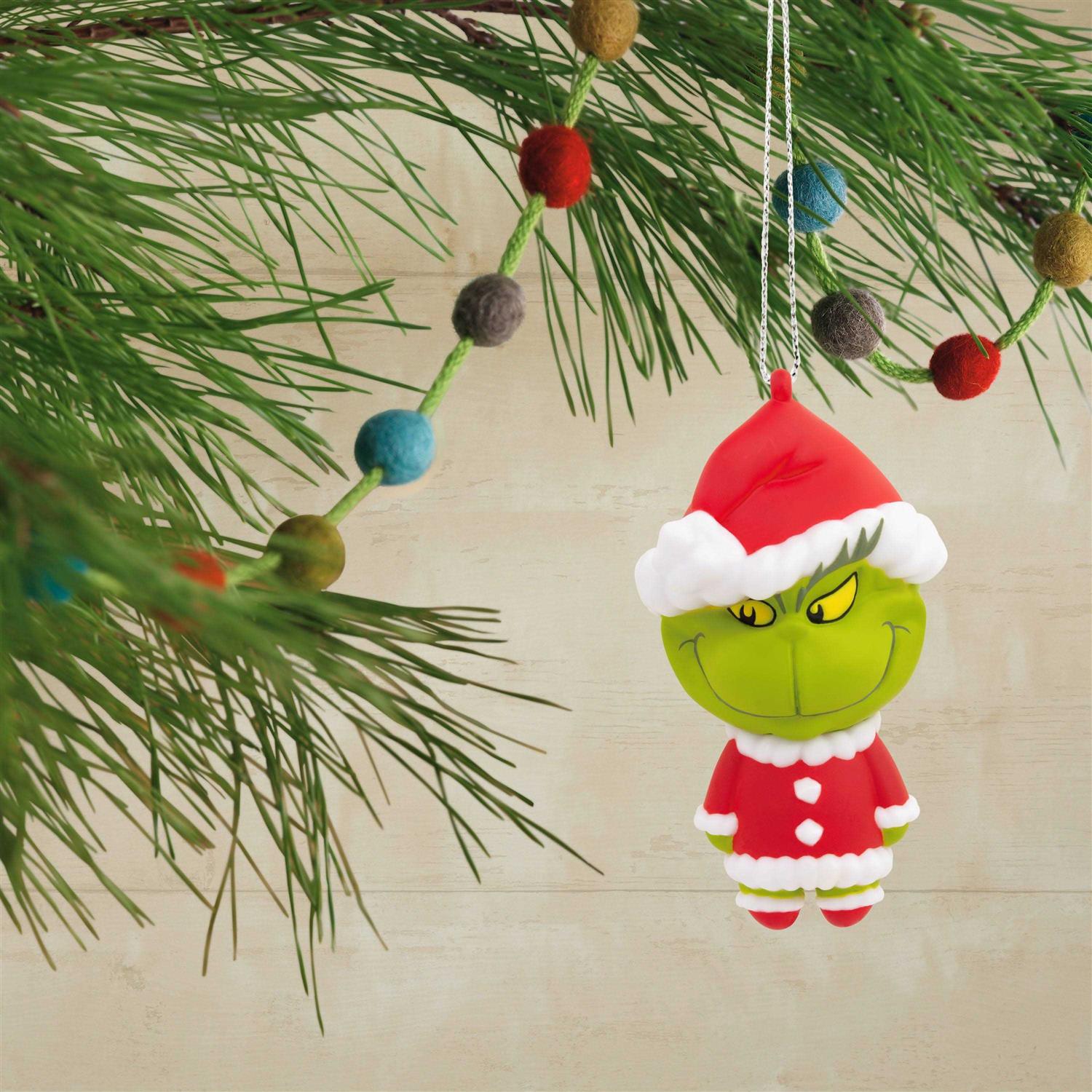 Celebrate the family tradition of the Dr. This shatterproof Christmas tree ornament featuring a stylized design of the Grinch in his homemade Santa costume is a fun addition to your holiday decor that will delight all the Whos in your home, the tall and the small. Hallmark Ornaments are a great way to commemorate hobbies, life events and individual interests in entertainment, sports and more. Each festive and collectible ornament is perfect for sharing with family and friends. TM & 2023 Dr. Seuss Enterprises, L.P.