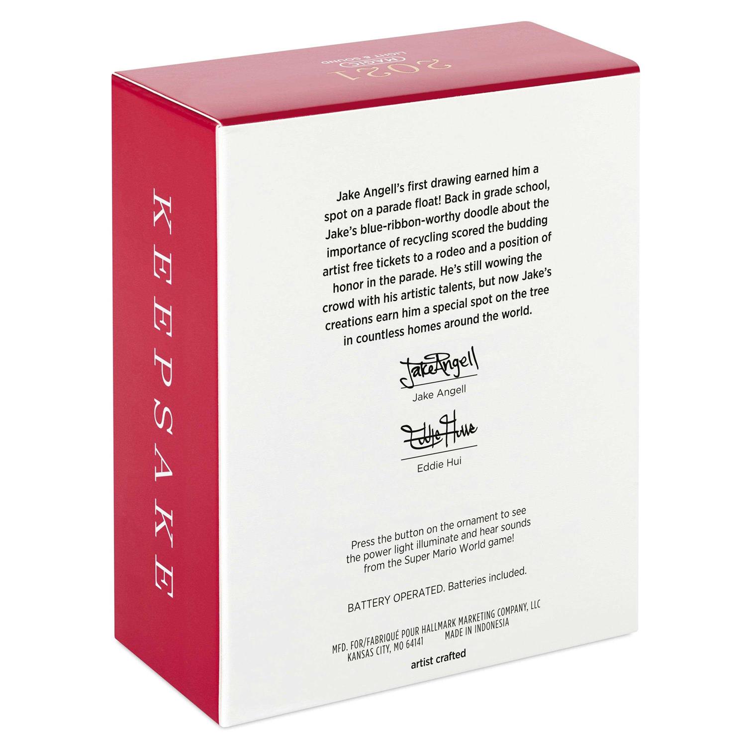Recall hours spent sitting in your bean bag chair parked in front of the television, video game controller in hand. Nothing mattered except defeating Bowser and ultimately completing the entire Super Mario World game. Relive the care-free fun when you display this Super NES console Christmas tree ornament that lights up and plays the familiar music and sounds of the iconic video game (battery-operated). Requires three (3) LR44 batteries, included. Ornament measures 2.97 inch W x 1.48 inch H x 3.61 inch D.