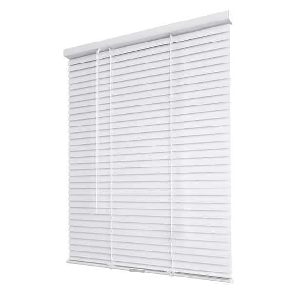 Cordless Vinyl Blinds by Hampton Bay are a safe and affordable choice to regulate light into any room. Vinyl blinds are resistant to heat and moisture, and are perfect for kitchens, bathrooms, and garages. The room darkening curved slats blocks 93% of light. These blinds are great for any home or office. For maximum light and privacy control, rotate the slats downward to ensure proper closure. Color: White.