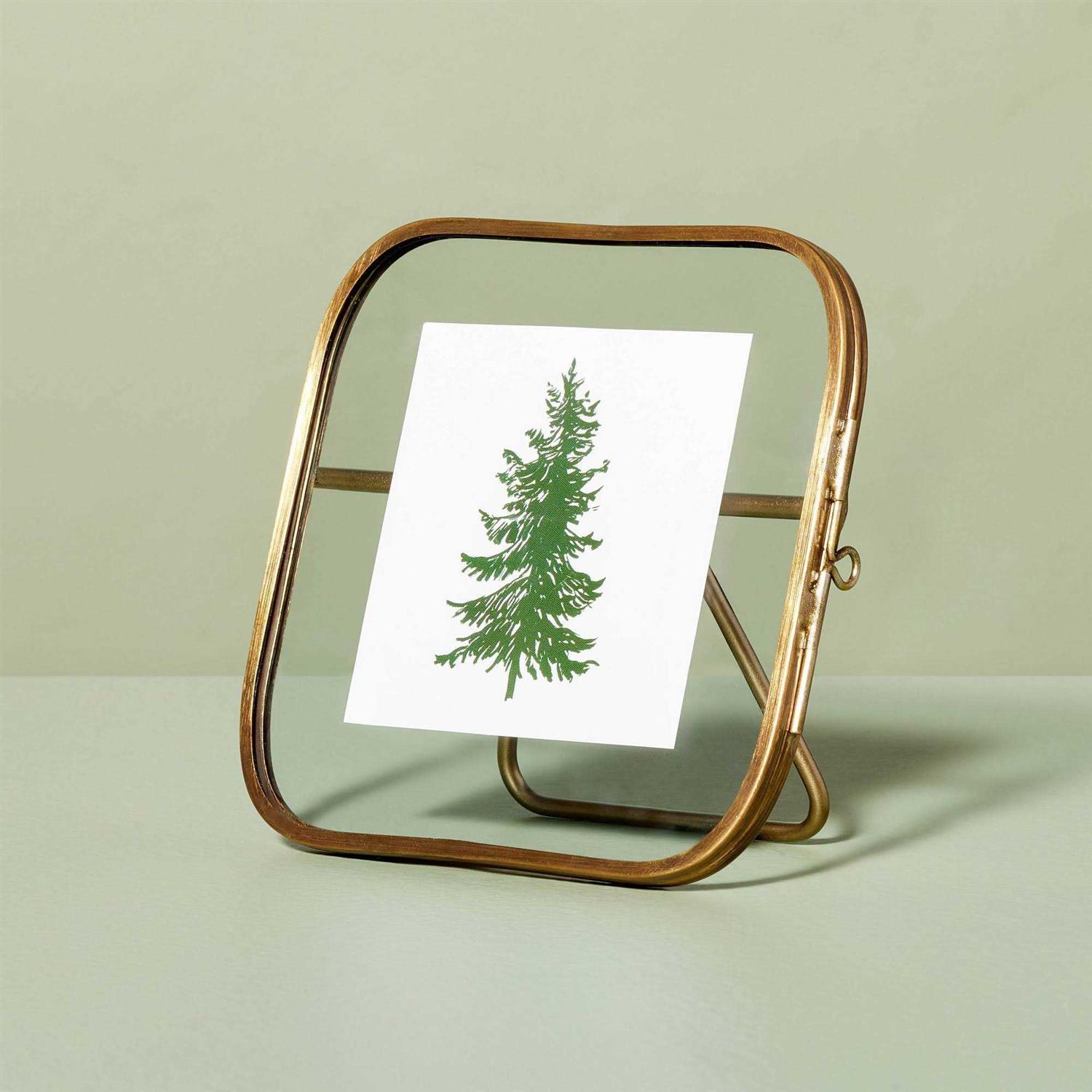 These two glass frames are designed in a rectangular shape with rounded corners and winter tree images to beautifully complement your holiday decor. Designed with antique brass frames, these pieces have easel backs for easy placement on any flat surface. Hearth and Hand with Magnolia: Gather – Create – Enjoy Color: One Color.