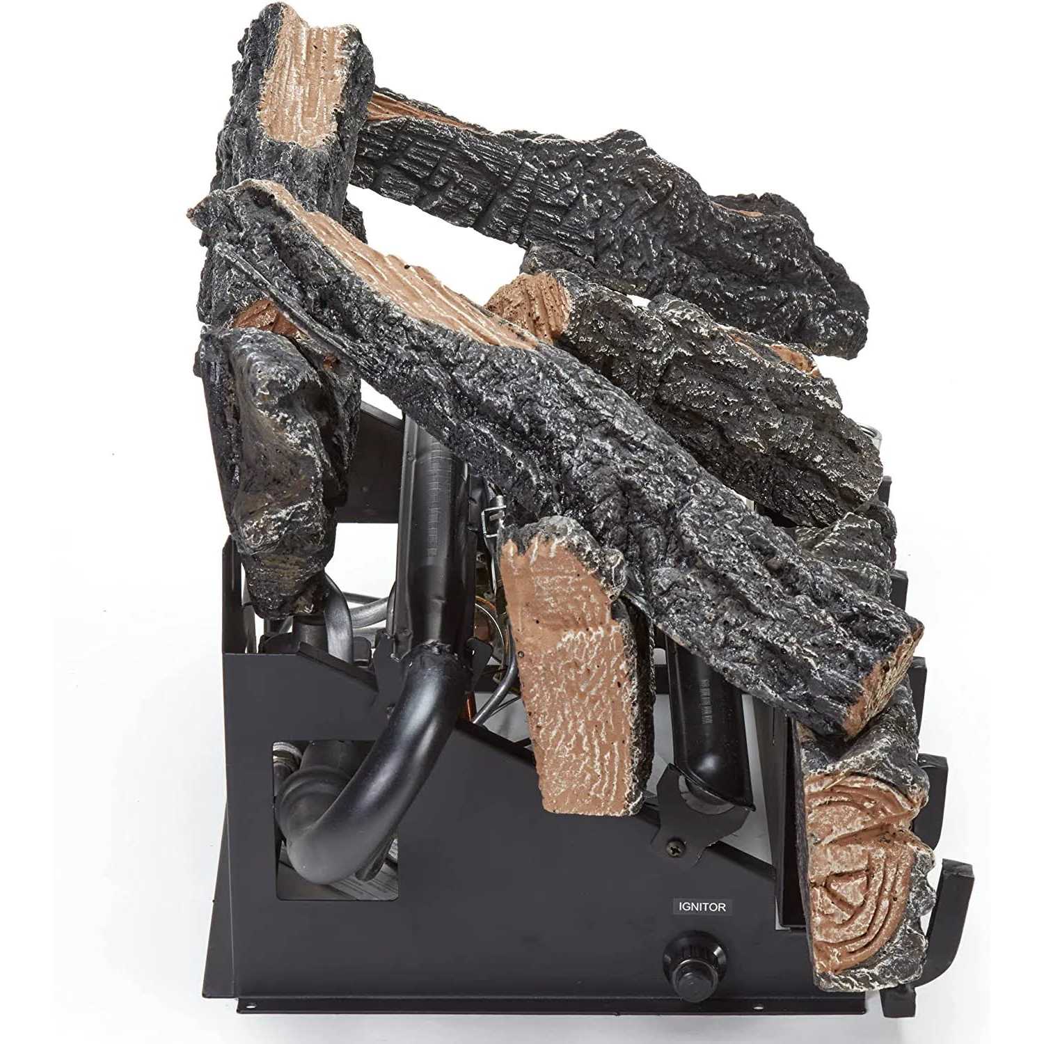 This rich, hand-painted, cement log set made of superior refractory ceramics provides excellent details, emulating the realism of a wood fire. During the burn season and in the off season, the log set is an attractive accent to any room, creating an exquisite look to your fireplace and magnifying the beauty of your home. The easy to use Thermostat Control feature regulates the fireplace to maintain the perfect heat setting for your home. This vent-free product may be used as a vented product. To operate as a vented product you must always operate the log set with the chimney flue damper open. You must install the damper clamp (included). This will insure vented operation.