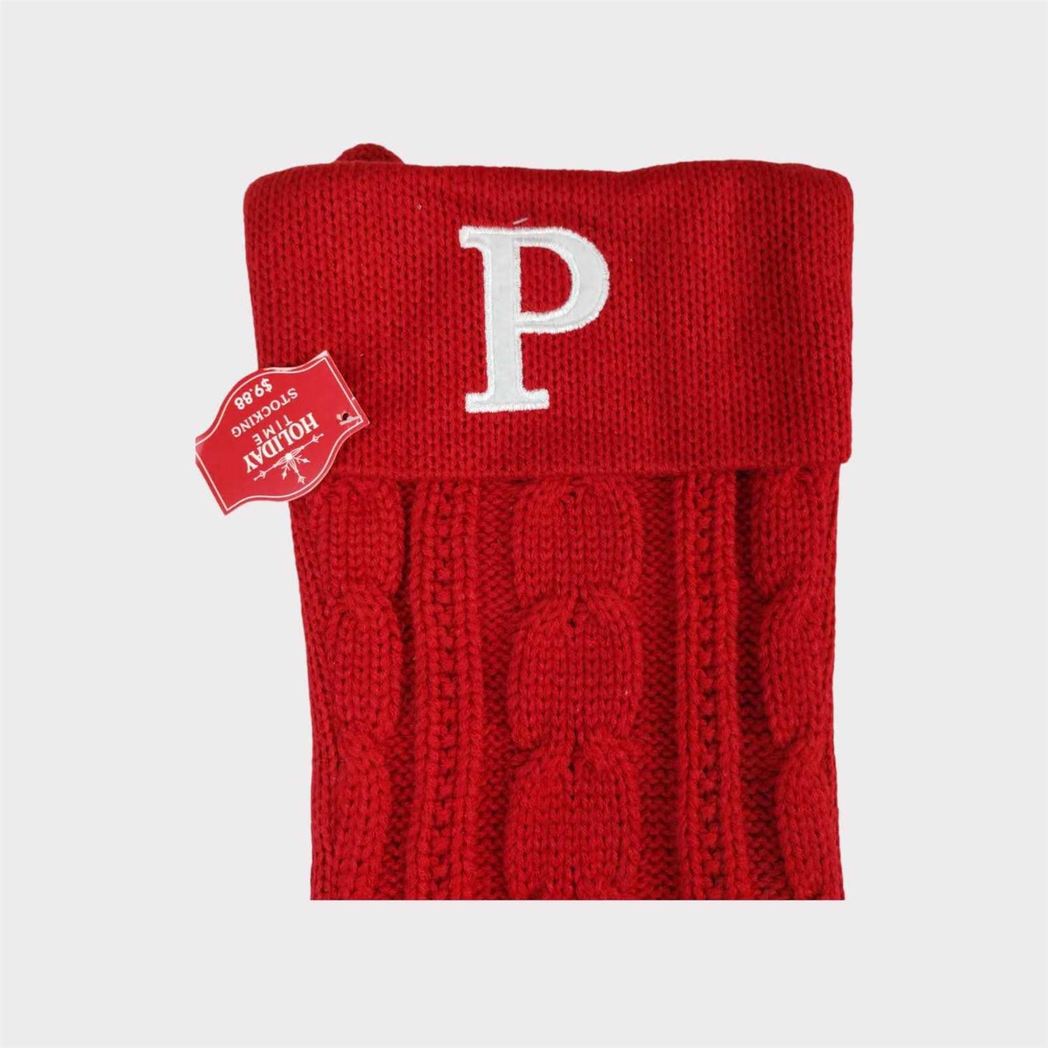 Decorate for the season with the Holiday Time Monogram Letter P Knit Stocking. This festive stocking is ready to hang by the chimney with care. Featuring a lovely knit design in a vibrant red color, this stocking has a wide knitted cuff, a monogramed letter, and a hanging loop that makes it easy to hang from the fireplace mantel. This stocking is also a great option for stuffing with little trinkets and gifts and giving to family and friends over the holiday season. Prepare for the merriest time of year with the Holiday Time Monogram Letter P Knit Stocking.