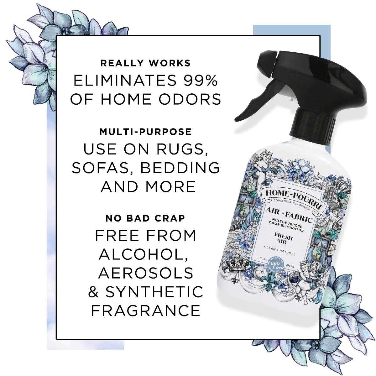 Don’t mask it! Home~Pourri refreshes any smelly room in your home in air or on fabric. Proprietary natural Funk Lock Technology neutralizes odor molecules so they never reach your nose. Super technological Funk~Pourri eliminates odor entirely and leaves your home smelling better than you found it. Simply spritz 3-5 sprays on any smelly surface** or into the air. From the makers of Poo~Pourri so you know it works!