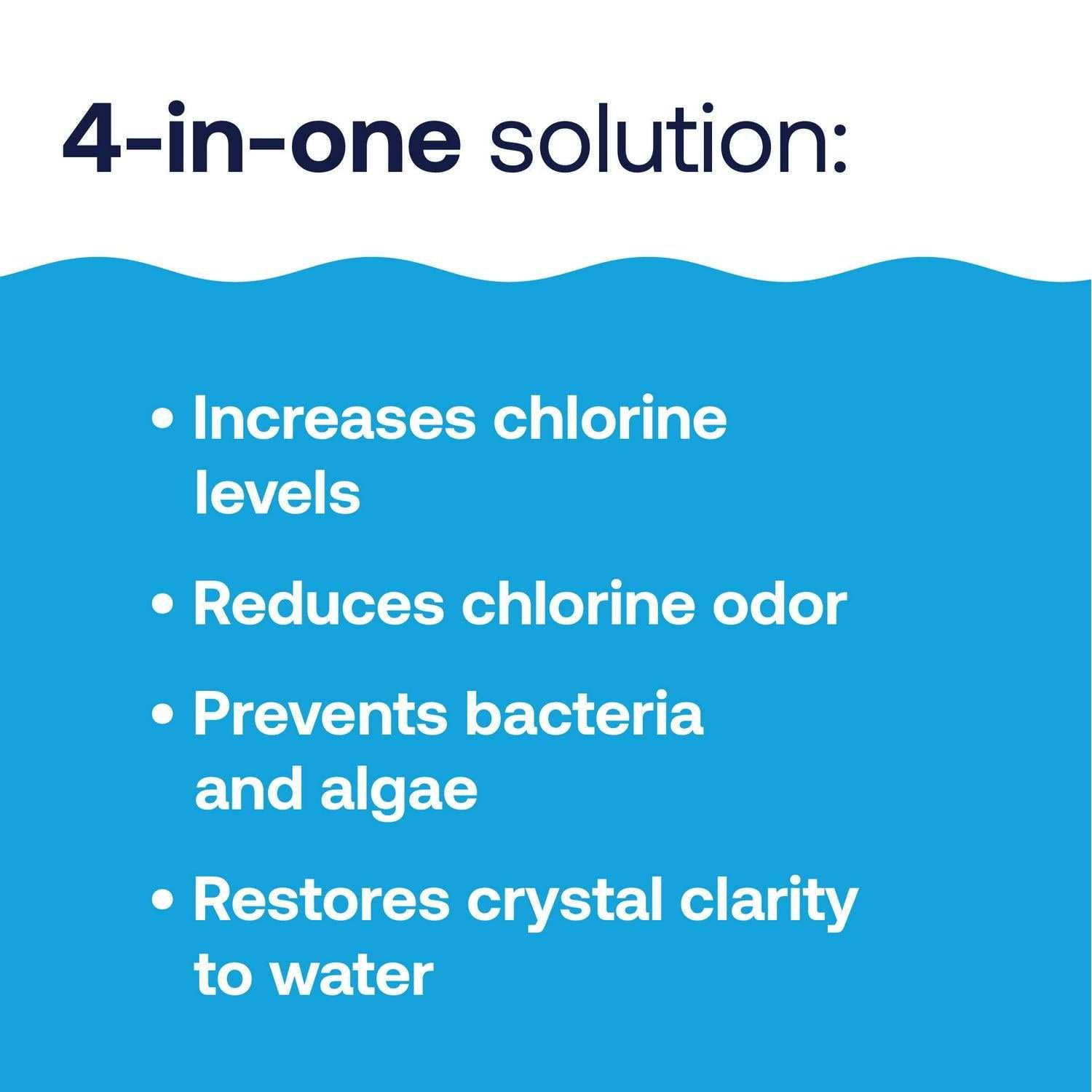 This is an effective, multi-purpose product that sanitizes, clarifies, helps prevent algae and shock treats your pool.HTH Super Shock! Pool Shock Treatment is the 4-in-1 powerful pool shock designed to boost chlorine levels, and kill and prevent bacteria and algae for a clear, healthy pool. Each pound of Super Shock! packs a powerful punch, treating 13,500 Gal and restoring crystal clarity in just 24 hours! This pool shock is great for all pool types and wont fade your pool liner. Test and apply shock treatment directly to your swimming pool every week to keep free available chlorine levels between 1 and 4ppm for healthy swimming conditions.