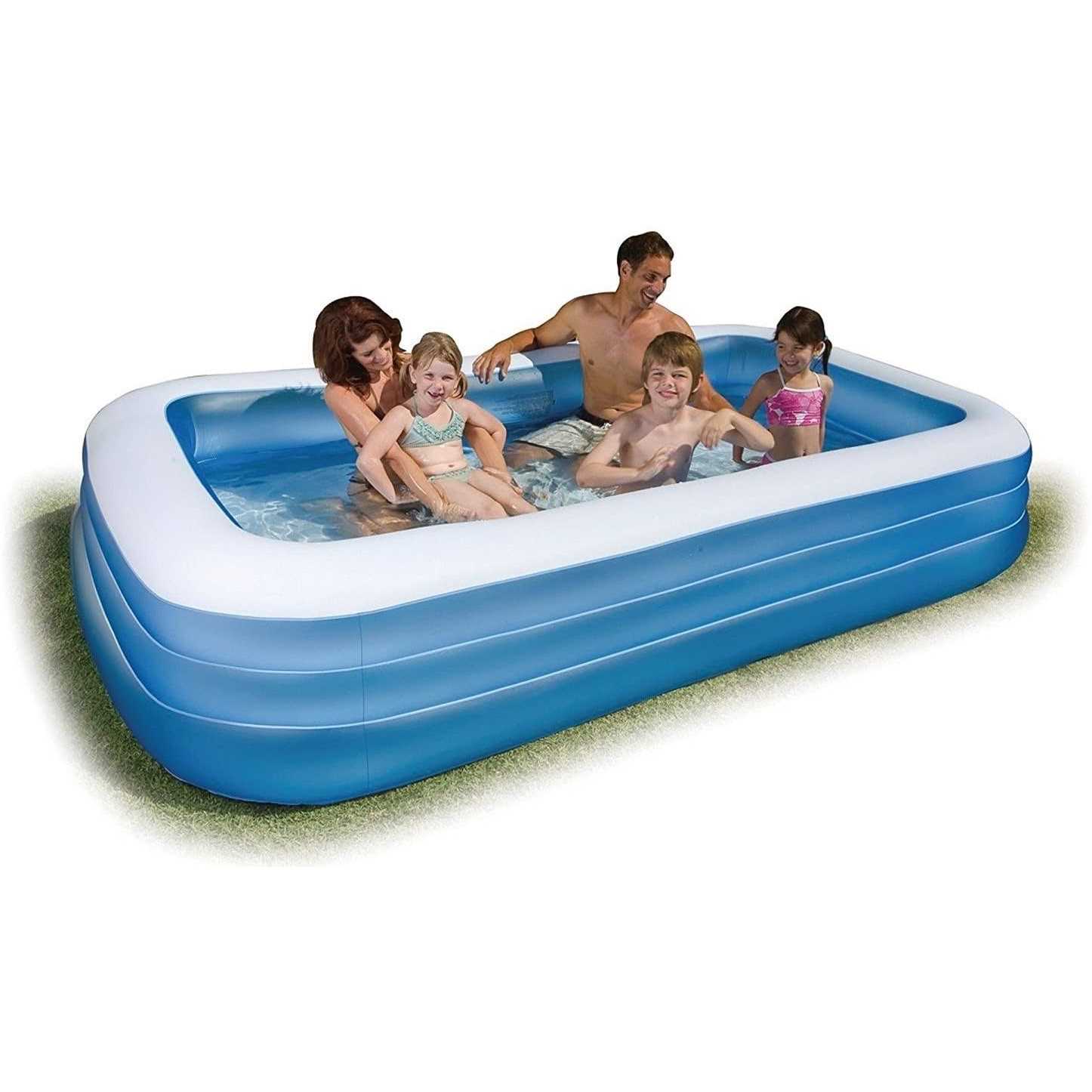 Intex swim centre family pool 6y make a splash this summer with the intex swim centre family pool! the wide side walls allow for maximum play room, and three air chambers, each with a combo valve, make inflation and deflation a breeze. Your family and friends can keep cool and enjoy this fun pool, all summer long! dimensions 120 l x 72 w x 22 h 3.05m x 1.83m x 56cm inflated 13ga 0.33mm vinyl 3 air chambers each with combo valve for quick inflation and deflation capacity 14 36cm of wall height 277 gal 1,050l drain plug includes repair patch recommended age 6y includes 1 x baby pool warning! children have drowned in portable swimming pools. Ensure active adult supervision at all times. Do not leave children unsupervised in or around the poolkeep them within arm’s reach. Pool fencing laws apply to this pool. Consult your local government authority for fencing requirements.