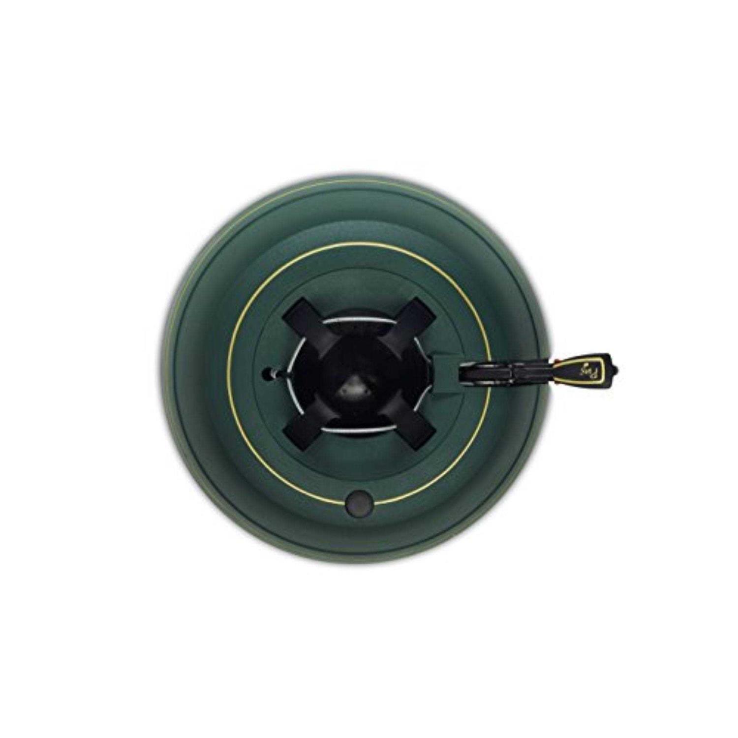 The tree stand is equipped with the original single cable operation. The foot pedal has an integrated bell that ‘DINGS’ when the claws have securely closed around the trunk. At the same time the foot pedal is automatically secured in the locked position. Last but not least, the tree stand comes with the patented safety belt to provide extra security. Just place your tree in the stand and pump the foot pedal until the bell ‘dings’ and you are done. Highlights: Color: Green. PING – automatic locking mechanism. Patented safety belt. Single cable technology. Dimensions: 15.4″ Length x 6″ Height x 15.4″ Width. Weight: 3.5 Pound. Secures any tree up to 7 feet (220cm) tall & trunk with 4.7 inch (12 cm) diameter. Retains 1.2 gallons (4.5L) of water with automatic water level indicator. Made in Germany.