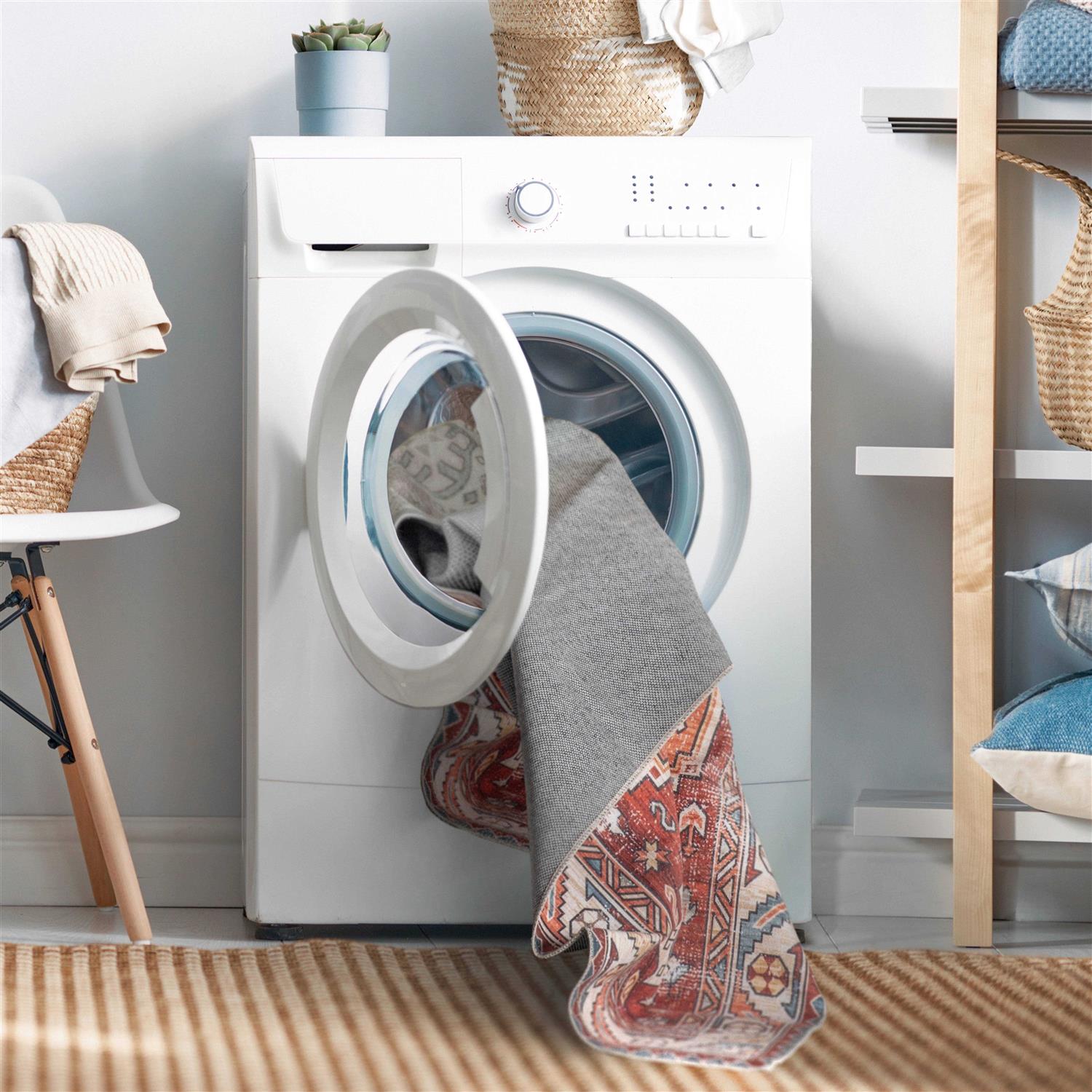 Made of a new and innovative material, nuLOOM Washable Rugs require just ONE piece and eliminate the hassle of a backing layer. This rug features a sleek look, it has a flat pile and includes non-slip backing. Simply layer a nuLOOM rug pad underneath the rug to add extra cushioning. Spill and stain resistant, this rug is kid and pet friendly and perfect for high traffic areas of your home. To clean, machine wash with cold water using a commercial-laundromat sized front-load machine.