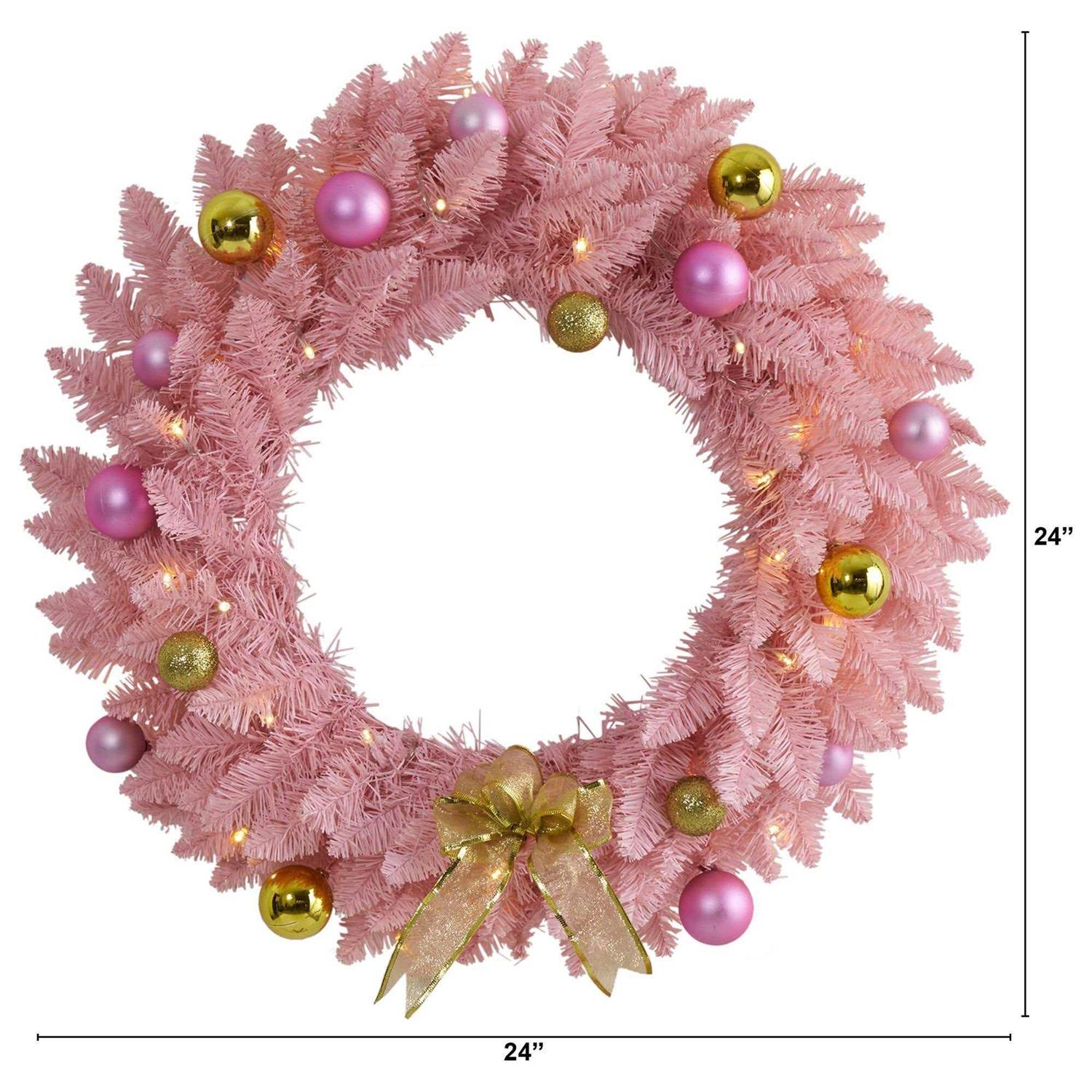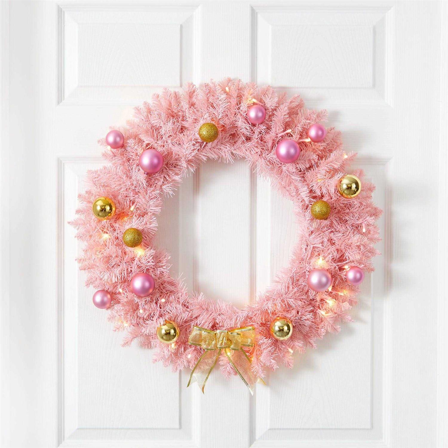 Nearly Natural 24 Pink Artificial Christmas Wreath with 35 LED Lights and Ornaments