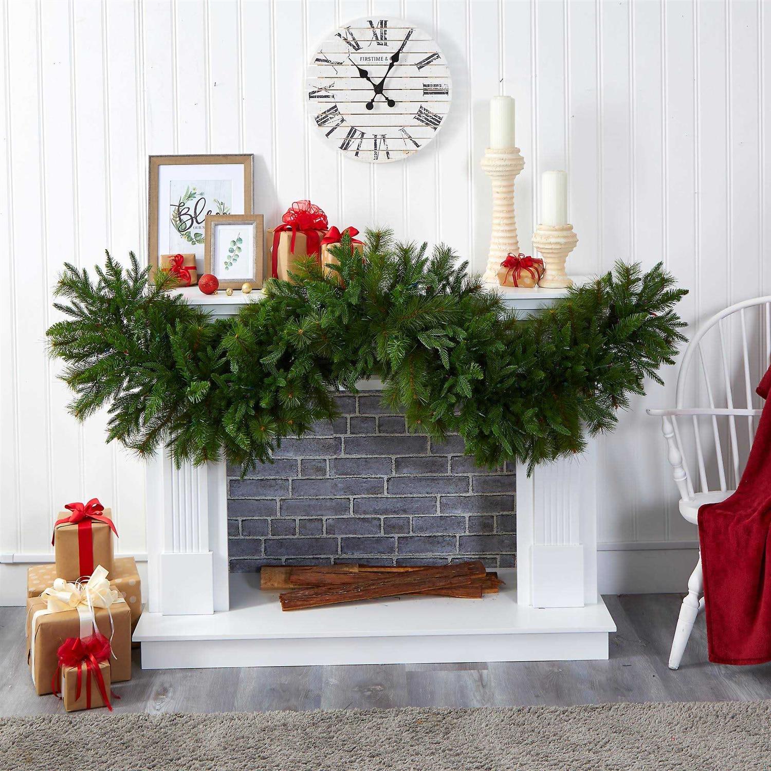 Nearly Natural 6′ x 18 Christmas Pine Extra Wide Artificial Garland with 100 Multicolored LED Lights