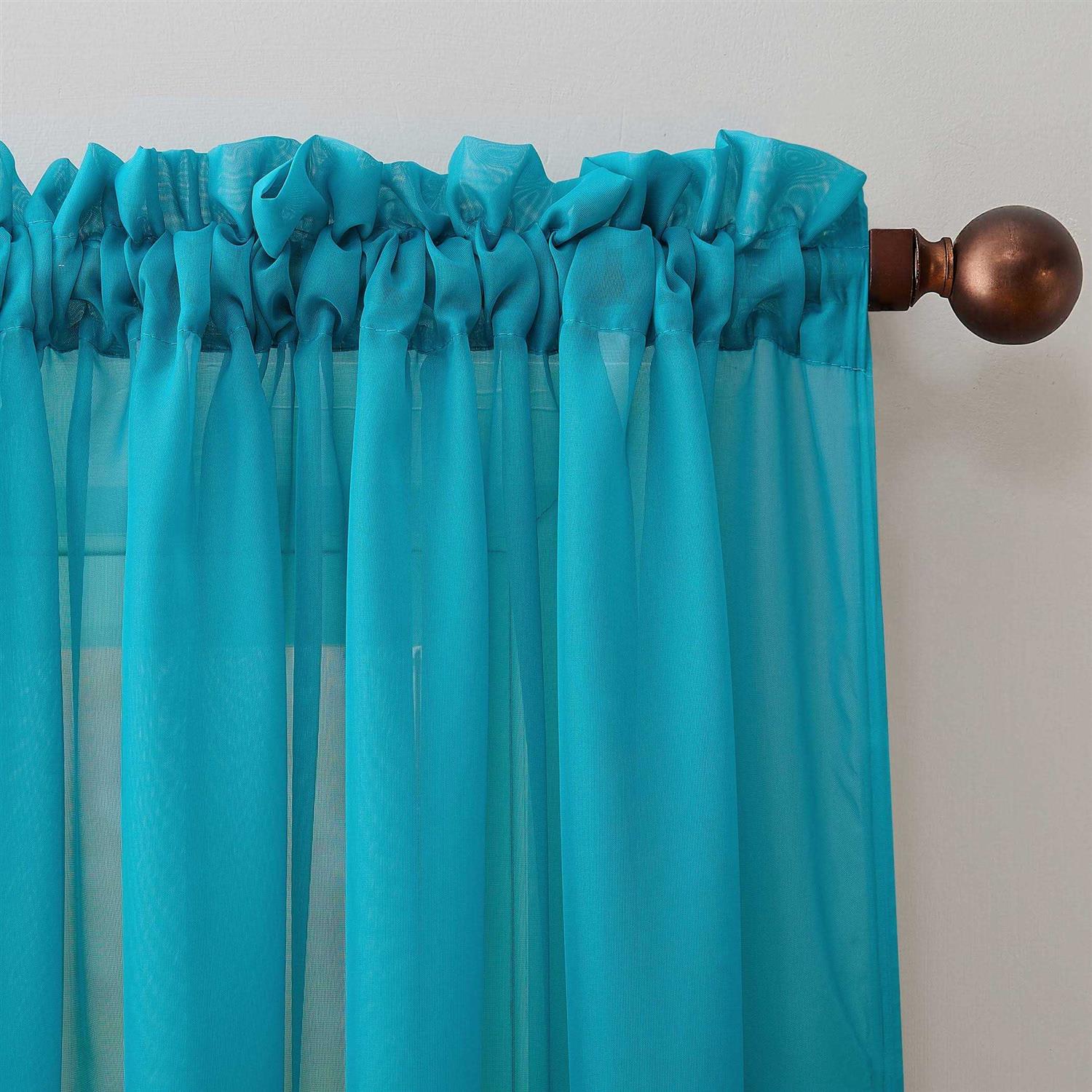 Add a rich and luxurious look to almost any room in the house with the Mainstays Marjorie Sheer Voile Curtain Panel. With several different sizes available, these draperies accommodate a variety of window types. Choose from one of the seven different colors available for the single curtain panel to match your decor. It can also be paired with coordinating drapes to enhance its appeal. Select two or more panels for rooms with a wide window for full coverage. The 1.5 inch pocket will accommodate the decorative standard rod of your choice. Sheer polyester construction ensures that this item is long-lasting and easy to maintain. Add this elegant window curtain panel to your bedroom or living room to dress up nearly any motif.