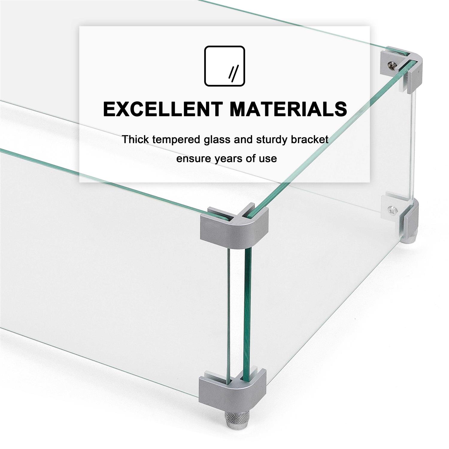 NUU GARDEN Complement your outdoor fire table with the Glass Wind Guard. Designed specifically for outdoor fire tables, this guard is built to last with fire-resistant tempered glass panels, polished aluminum brackets, and 3M anti-slip pads. All parts are effortless to clean with warm soapy water. The wind guard is a safety barrier and is also ideal for keeping families, friends, and children sound from flames.