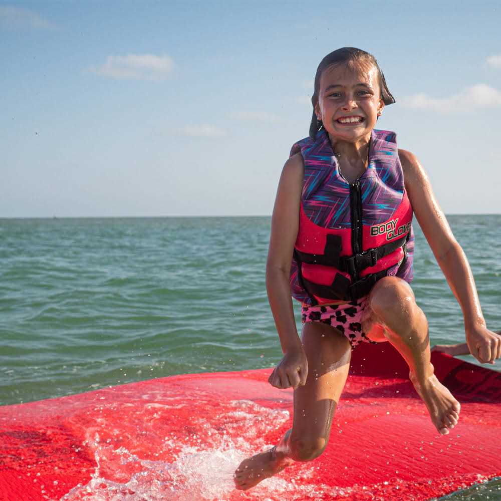 The Overton’s Splash Island is the ultimate water playground for the entire family. It’s a floating foam island that is safe, lightweight, and maintenance-free. Your kids, friends, and grandparents will play, run, or relax on this favorite water toy. Designed with 2 layers of cross-linked polyethylene foam, Splash Island is the most durable mat on the water. When the day’s fun is over, simply roll up the pad and secure it with the cinch straps. – Simply unroll and enjoy for endless fun on the water – Maintenance-free – No roll memory – Two layers of cross-linked polyethylene foam – Includes tether system and hook-and-loop, poly-webbing storage strapsSpecsDimensions: 18′ x 6′ x 1-3/8″Weight: 36 lbs. Capacity: 9-10 adults or 1, 350-1, 500 lbs. of distributed weight Made with two layers of cross-linked polyethylene foam Hook-and-loop, poly-webbing straps for secure storage Handles 1, 350-1, 500 lbs. of distributed weight | Overton’s Splash Island, 18′ x 6′ x 1-3/8″ | Camping World