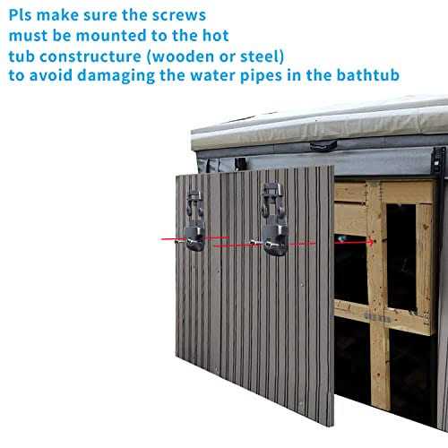 These will help protect your cover in strong winds and help to keep out unwanted guests You are bidding on one pair of hot tub cover straps prevent storm raining. They come with clips at each end of the straps that attach to the hot tub or deck. They measure approx 265cm from end to end, this includes the clips, they are approx 5cm long. the straps are adjustable from 48″~106″. The spa cover straps are 1 inch wide.