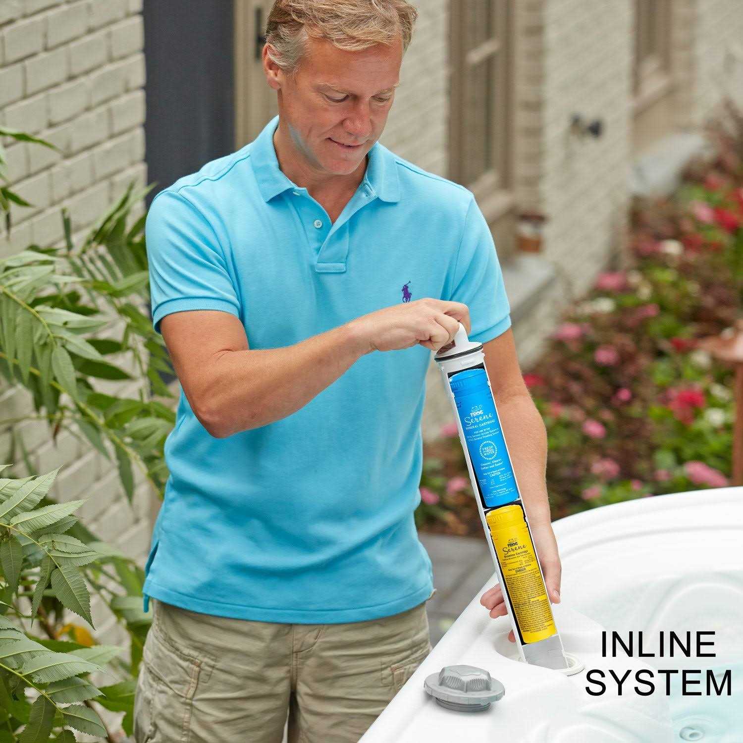 SPA FROG Floating System uses pre-filled mineral and bromine cartridges that snap into a reusable floating holder and works in any spa. The SPA FROG Floating System transforms your spa into the perfect environment for soothing relaxation with up to 50%* less bromine than standard bromine spas. Cartridges are easily adjusted to meet the sanitizing needs of virtually any size spa. Replace the mineral cartridge every 4 months when you drain and refill your spa. The bromine cartridge will last 2-4 weeks depending on use. The SPA FROG In-Line System with its patented design is built right into the spa using the same replaceable mineral and bromine cartridges as the SPA FROG Floating System. Simply open the cap pull up the holder and snap in the cartridges. See your spa dealer about new spas that come with the SPA FROG In-Line System.
