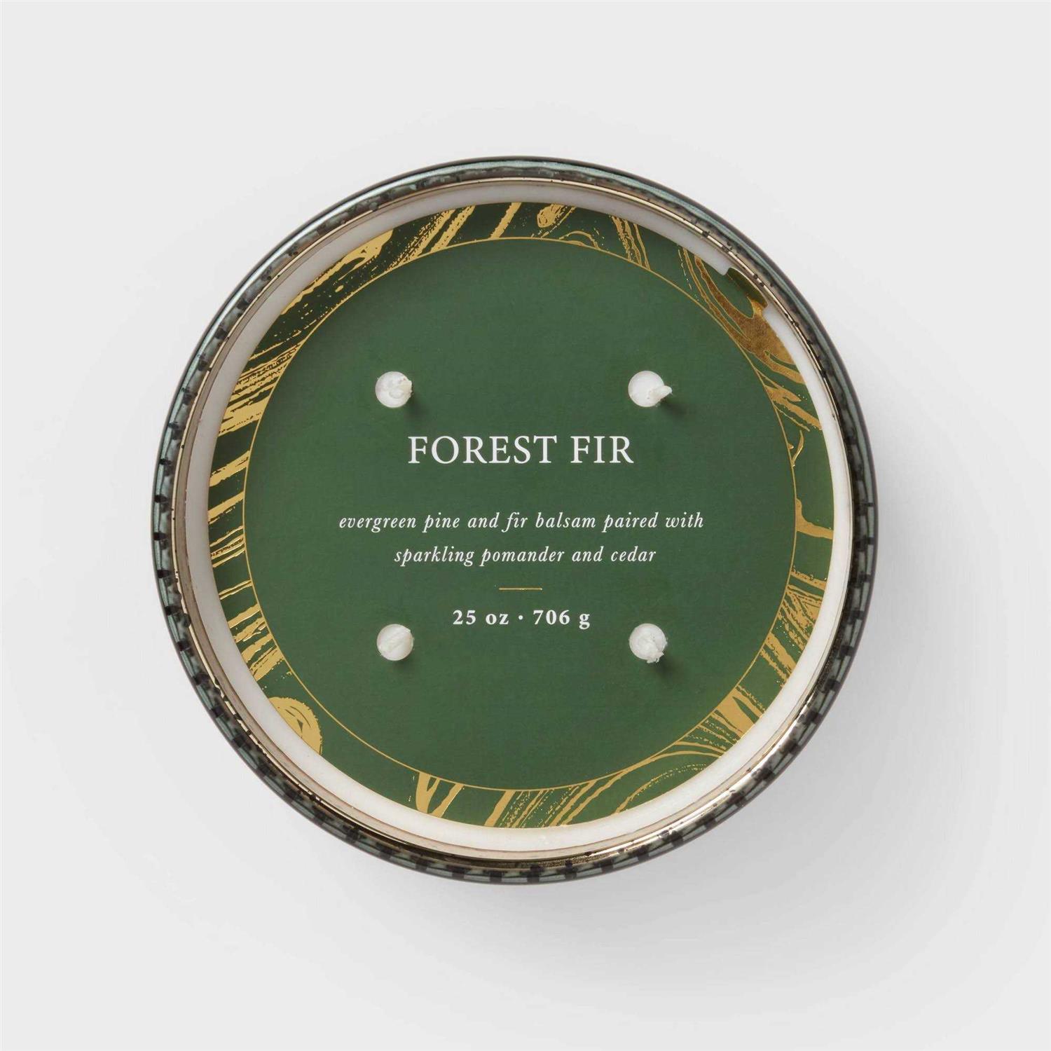 Elevate your space with the Ribbed Mercury Glass Forest Fir Footed Jar Candle from Threshold . It features pumpkin, cinnamon and apple cider fragrances to infuse your surroundings with a soothing scent. The glass vase adds elegance to any room. Whether you’re unwinding after a long day or setting the mood for a special occasion, this candle from Threshold creates a relaxing ambience. Threshold : Looks like home, feels like you
