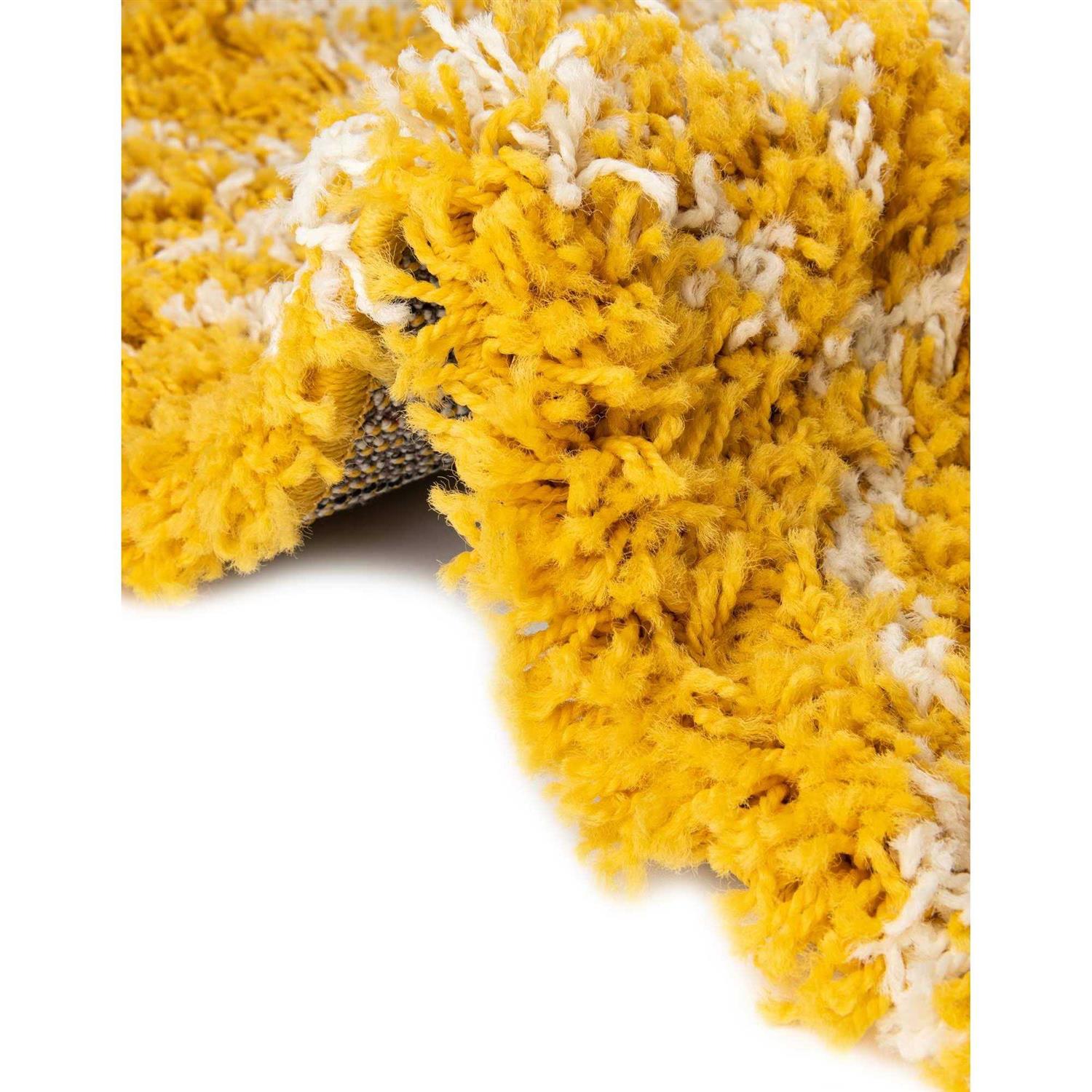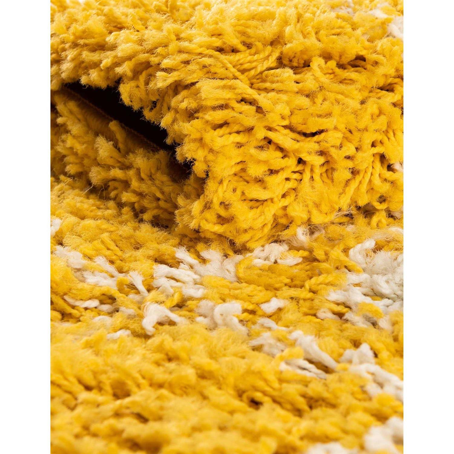 Easy Care, Stain-Resistant, Textured Moroccan Trellis Shag Yellow Rug. 5′ 3 x 5′ 3 Square. Shed-free. Contains Colors: Yellow, Ivory. Styles: tribal, modern Patterns: geometric, trellis, abstract