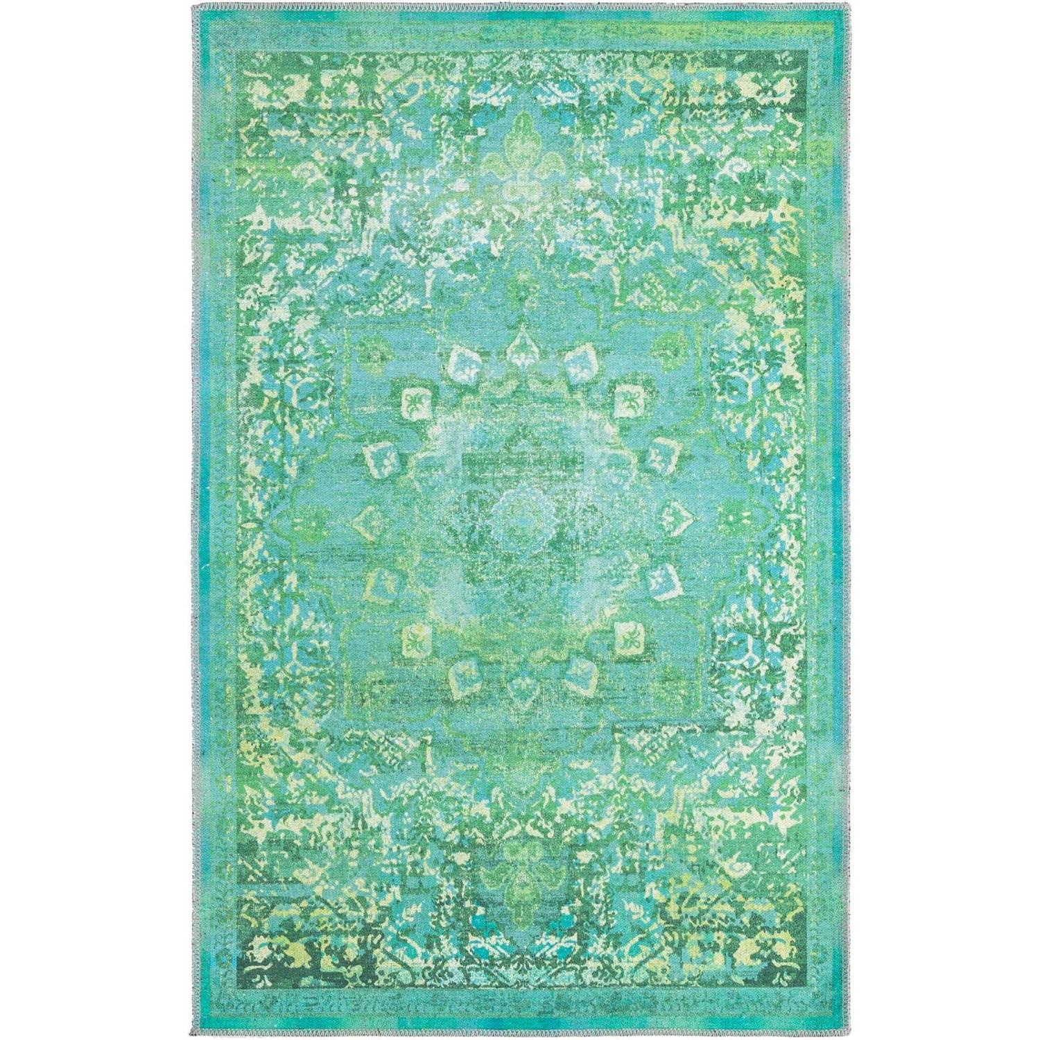 Timeless looks on washable rugs; whats not to love? With bright contemporary colors and tribal-inspired medallion designs, the Renaissance Collection brings home worldly design in a low-maintenance package. Durable modern materials and a cotton backing mean cleaning is as easy as throwing it in the washing machine! The printed traditional designs are available in bold colors ranging from dark blacks and blues to bright greens and pinks blend together like tie-dye, giving you lots of options. A subtle abrash gives the rugs a casual, distressed look perfect for bohemian and shabby-chic decor.