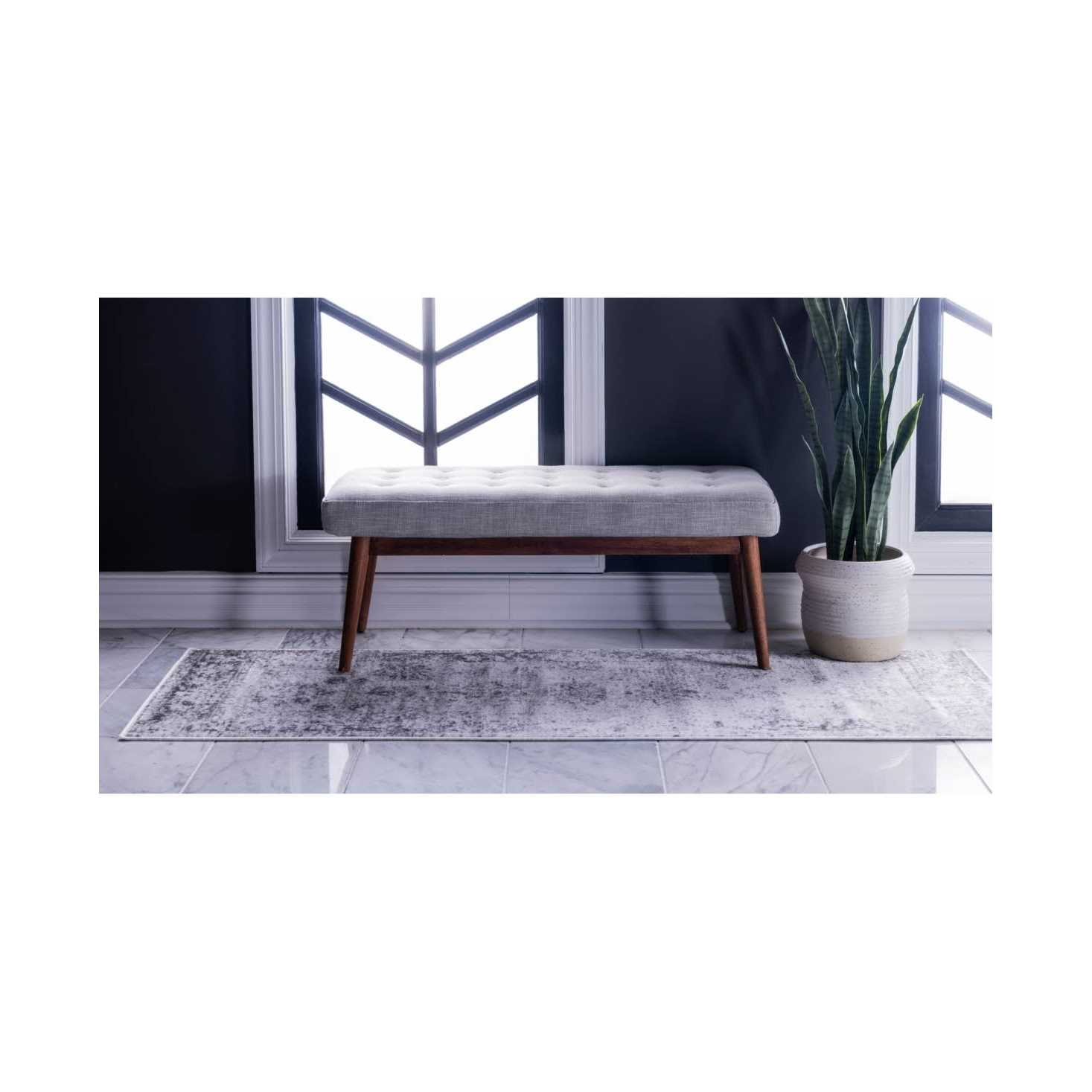 Coordinate the classic aesthetic of your reading nook with this vintage-style area rug. Showcasing an intricate oriental motif with a distressed finish, this polypropylene rug offers an ideal fit for traditional homes. This machine-made rug boasts a sturdy cotton backing and a stain-resistant pile to present a pet-friendly and high-traffic compatible weave. Made of polypropylene Cotton backing Vintage, transitional style Faded Oriental pattern Machine-made Latex free Indoor only Suited for high-traffic areas. Antimicrobial Stain and fade resistant Pet friendly Vacuum regularly and spot clean with light detergent Let the rug lie flat upon arrival. Reverse roll to eliminate creases 0.25-inch pile height. Tip: We recommend the use of a non-skid pad to keep the rug in place on smooth surfaces. All rug sizes are approximate. Due to the difference of monitor colors, some rug colors may vary slightly. Size: 2′ x 6’7″ Runner. Color: Gray. Pattern: Border.