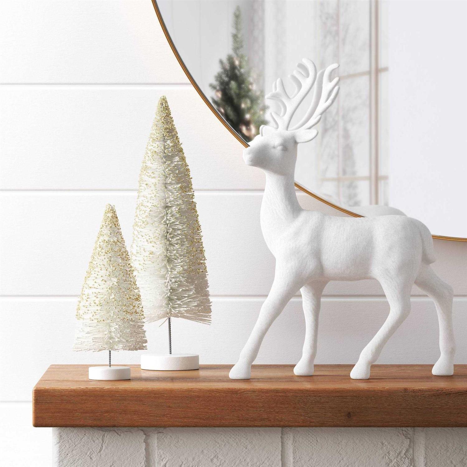 Fill your holiday decor with the classic charm of this Metallic Plastic Standing Deer Animal Figurine from Wondershop . This decorative plastic figurine features a reindeer in a metallic white finish for simple yet stunning festive flair. Featuring a freestanding design, it makes a great option for displaying on your mantel, shelf or tabletop solo or as a part of a larger holiday display. Welcome to the Wondershop .