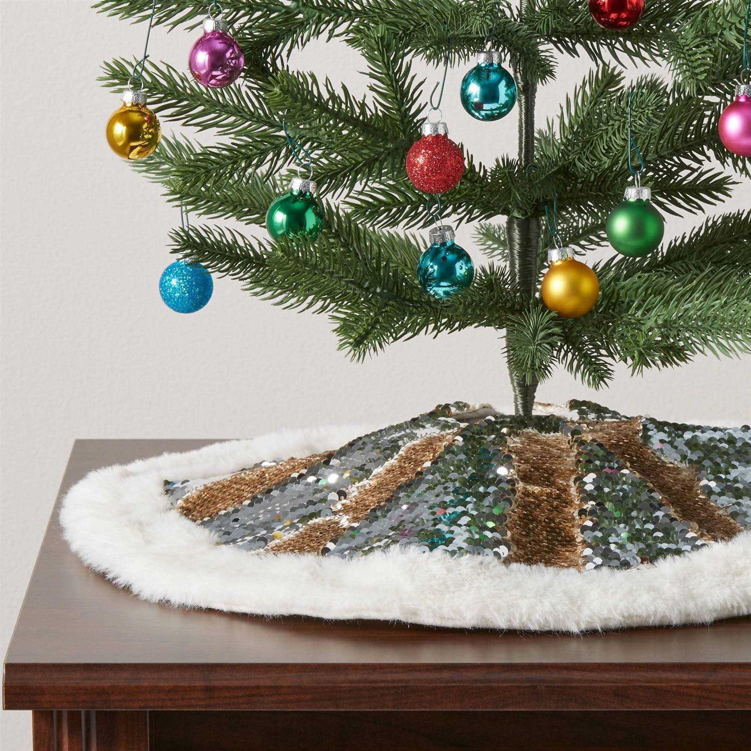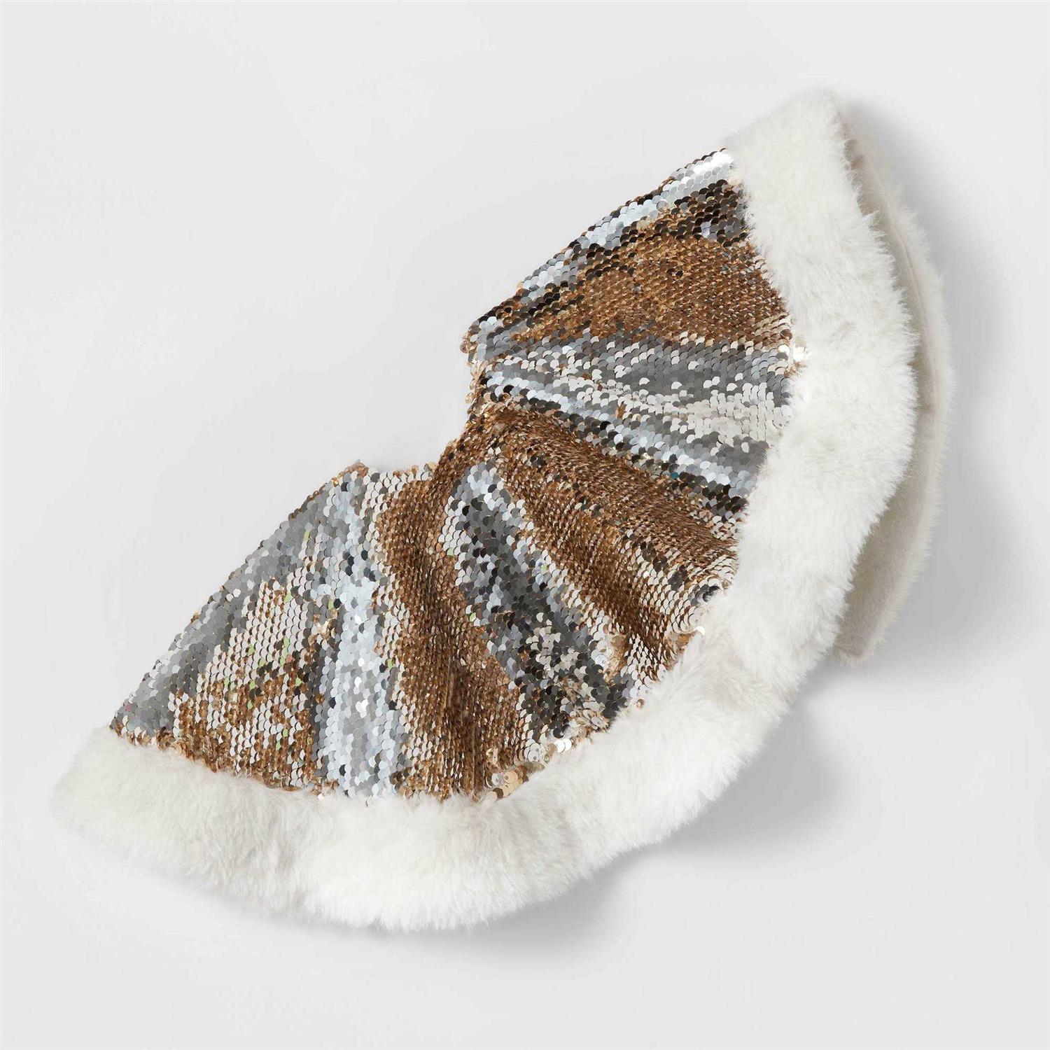 Glam up your Christmas tree game with the Reversible Sequined Mini Christmas Tree Skirt in Silver/Gold from Wondershop . This tree skirt features a silver and gold sequined pattern on one side and solid gold sequins on the other. It’s the perfect way to hide or dress up a tree stand or pot. You can use it for either real or artificial trees, and the 16-inch-diameter size makes it perfect for tabletop varieties. Wondershop : Welcome to the Wondershop.