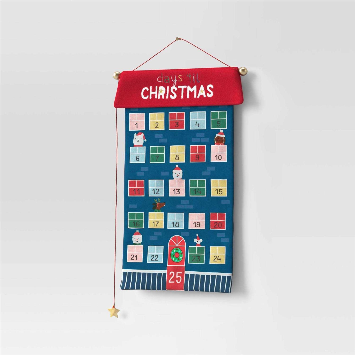 Build up the excitement with this Fabric ‘Days ’til Christmas’ Hanging Advent Calendar from Wondershop . Made from fabric, this hanging advent calendar is adorned with the message “Days ’til Christmas” displayed at the top, and it has 25 numbered pockets to help you keep track of how close Christmas is. The string with star moves from pocket to pocket as the big celebration draws near. With a reusable design, this Advent calendar will be a piece your family loves incorporating into your seasonal decorations for years to come. Welcome to the Wondershop .