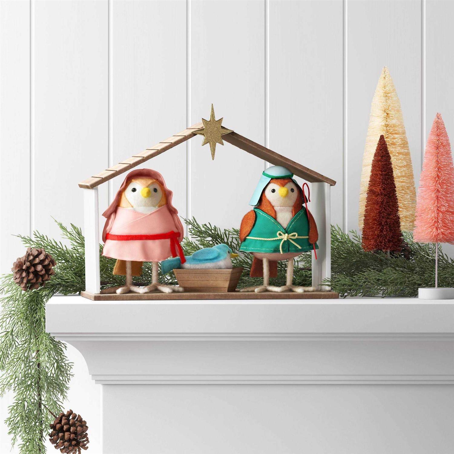 Wondershop 4pc Featherly Friends Fabric Bird Christmas Nativity Scene Figurine Set