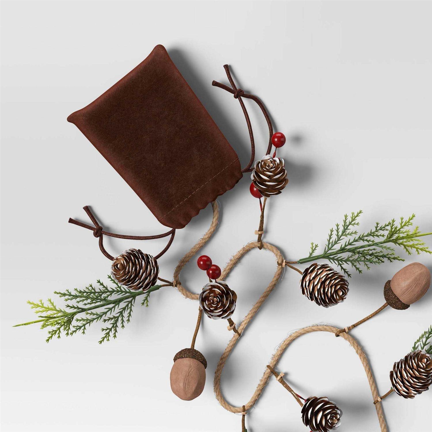 Wondershop 6′ Battery Operated Lit Pinecone with Acorns and Berries Decorative Christmas Wall Garland Brown/Green