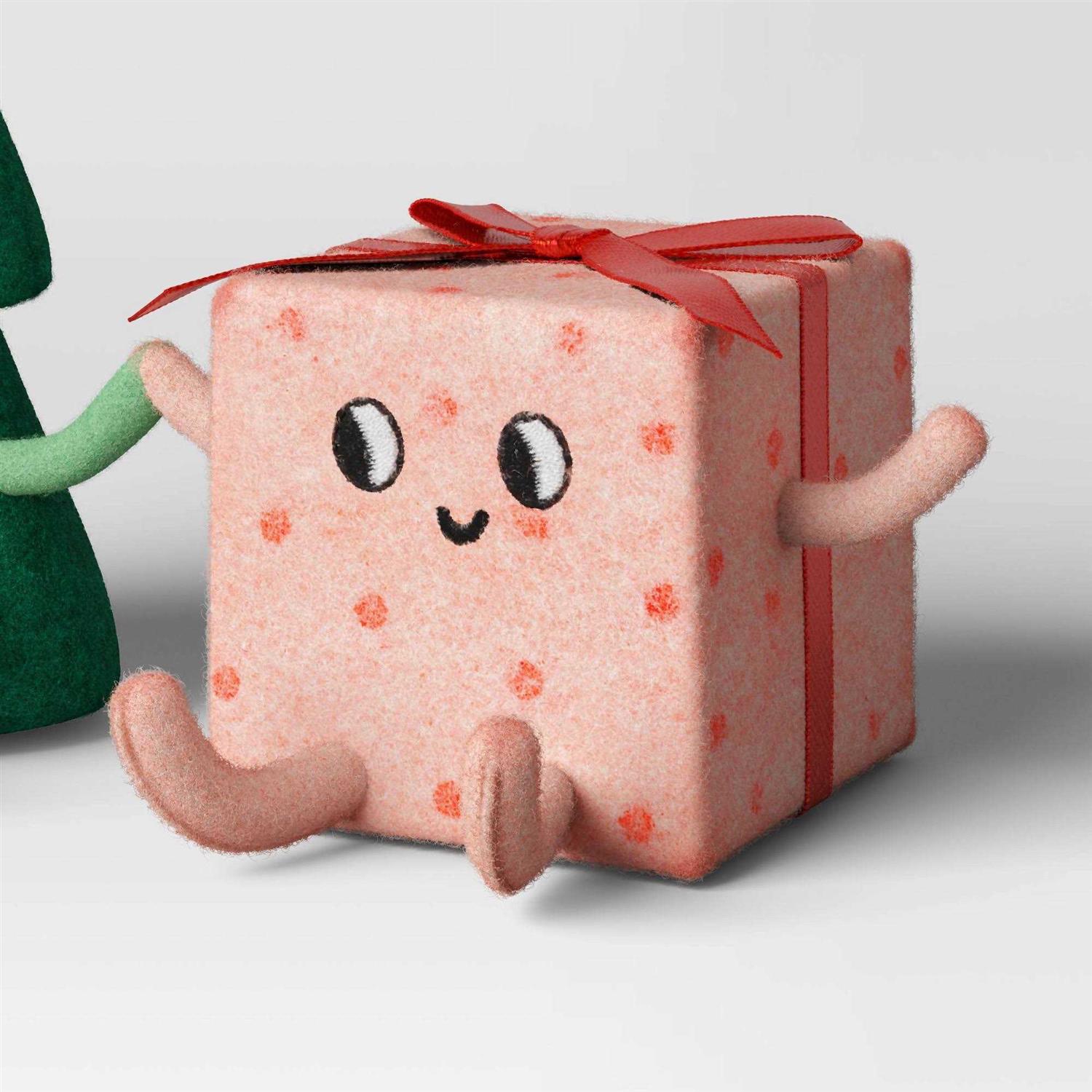 Spruce up your holiday display with this Felt Christmas Tree and Gift Figurine Set from Wondershop . This decorative figurine features a Christmas tree holding hands with a gift box for fun, festive vibes. Showcasing a tiered design, the Christmas tree figurine is adorned with colorful pompoms and a star tree topper for extra flair. This figurine set makes a great option for displaying on your mantel, shelf or tabletop, or as a part of a larger holiday display. Welcome to the Wondershop .