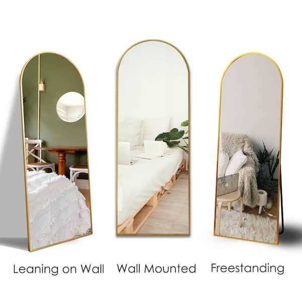 XRAMFY 21 in. W x 64 in. H Arched Gold Aluminum Alloy Framed Full Length Mirror Standing Floor Mirror